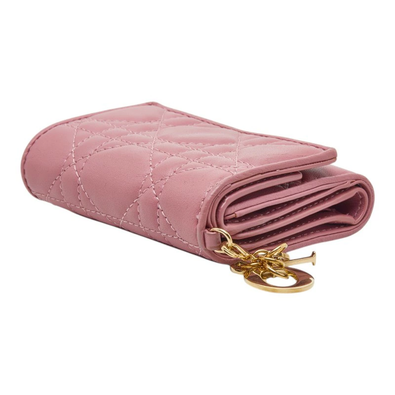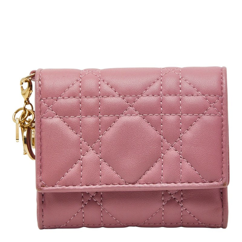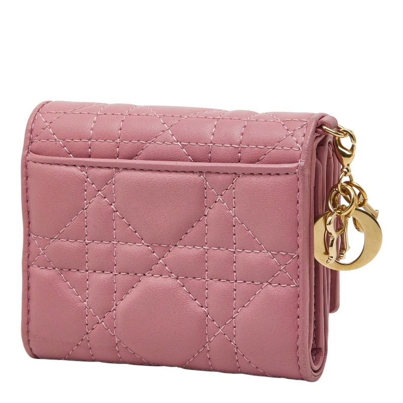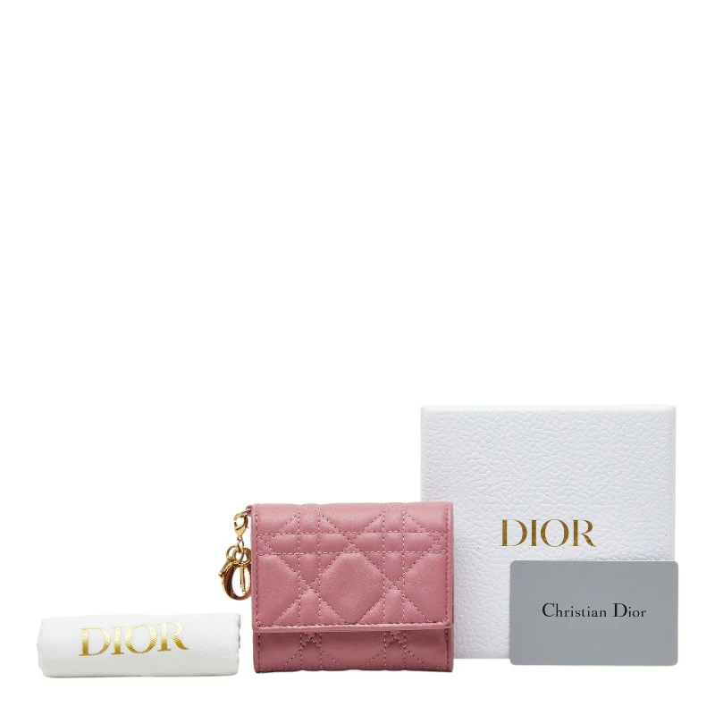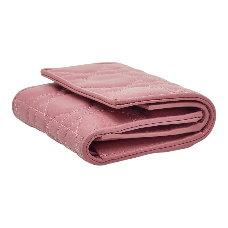 - ディオール コンパクトウォレット 三つ折り財布 ピンク レザー レディース Dior 【中古】