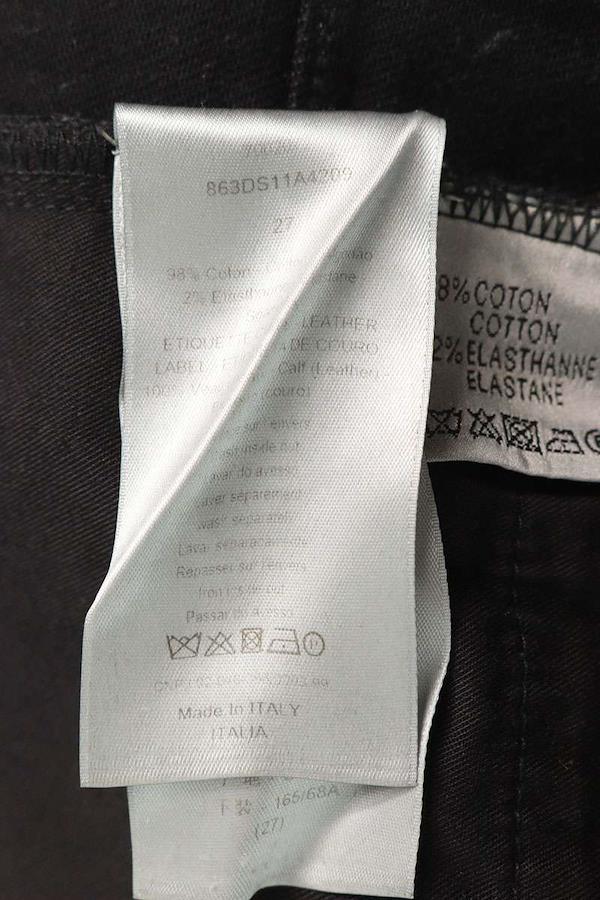 ランク:B (使用感がある商品)状態備考:全体的に擦れ、毛羽立ちがあります品質タグの表記が薄れていますブランド:ディオールサイズ:27インチ色:ブラック実寸:ウエスト幅38cm 股上21cm ワタリ幅25.5cm 股下71.5cm 裾幅15cm重さ:-素材:(表地) コットン98%、ポリウレタン2% (皮革部分) 牛革付属品:なしその他特徴:ボタンフライデザインです管理番号:10831-251021-0190