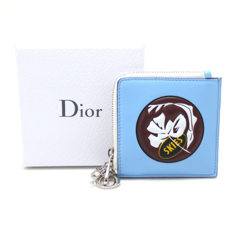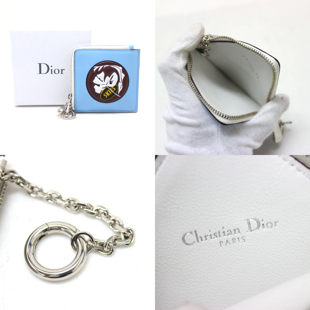 Dior DIORISSIMO coin purse with key ring, leather, light blue, women's, unused, pre-owned