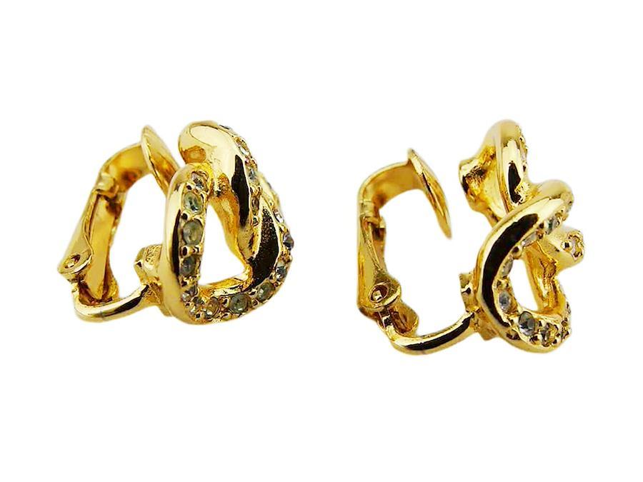 Dior Earrings, Chain Design, Rhinestones, Old Dior, Gold, Women's, Pre-owned