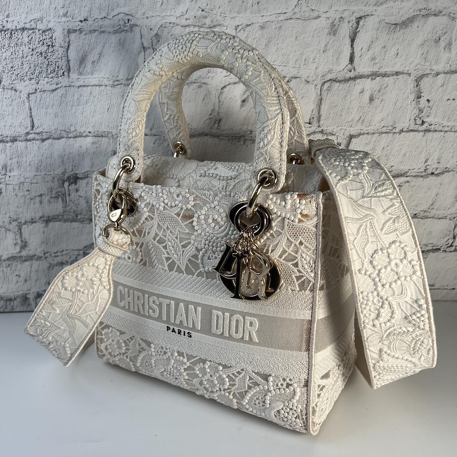 美品 Dior LADY D-Liteバッグ2WAY ショルダーバッグ ホワイト A-8671
