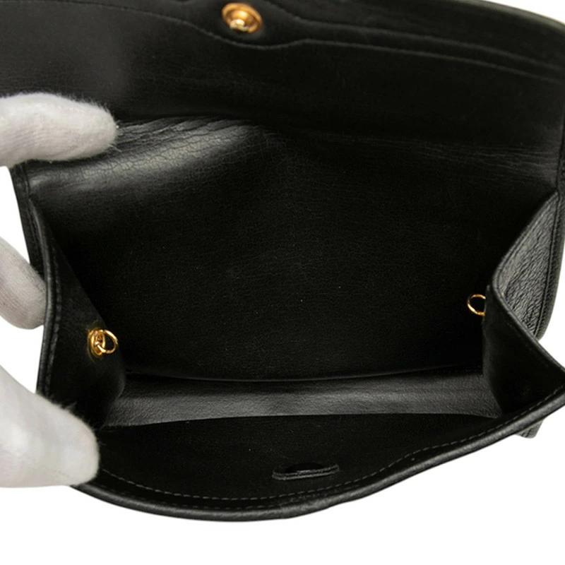 Dior logo crossbody chain shoulder bag in black and gold leather. Women's. Pre-owned.