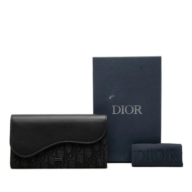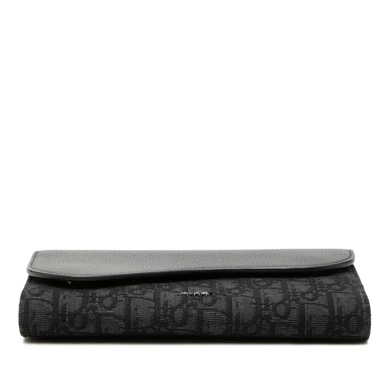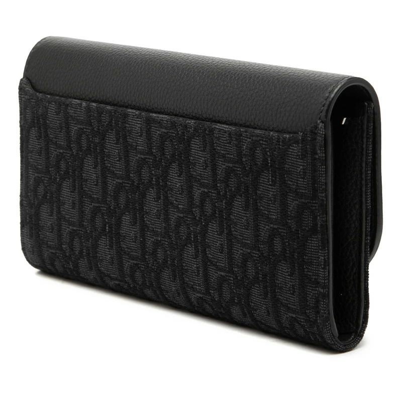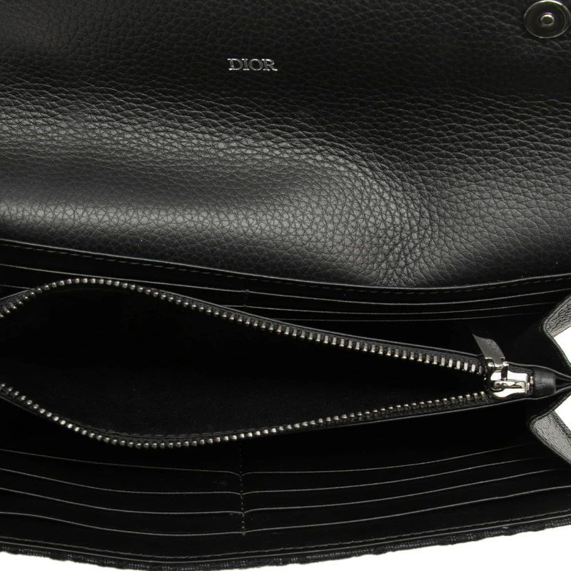 - ディオール オブリーク ロングウォレット 長財布 ブラック キャンバス レザー メンズ Dior 【中古】