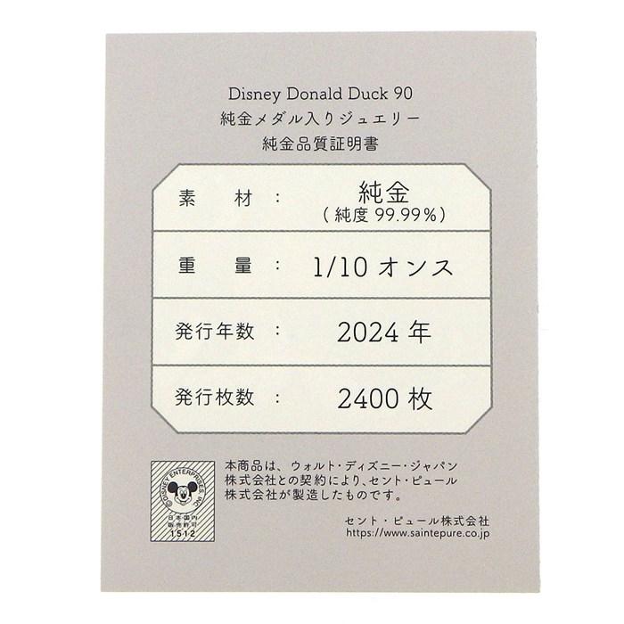 ■商品名ディズニー Disney ペンダントトップ ドナルドダック デイジーダック 90周年 1/10oz 2024年 2400枚限定 メダル Au999