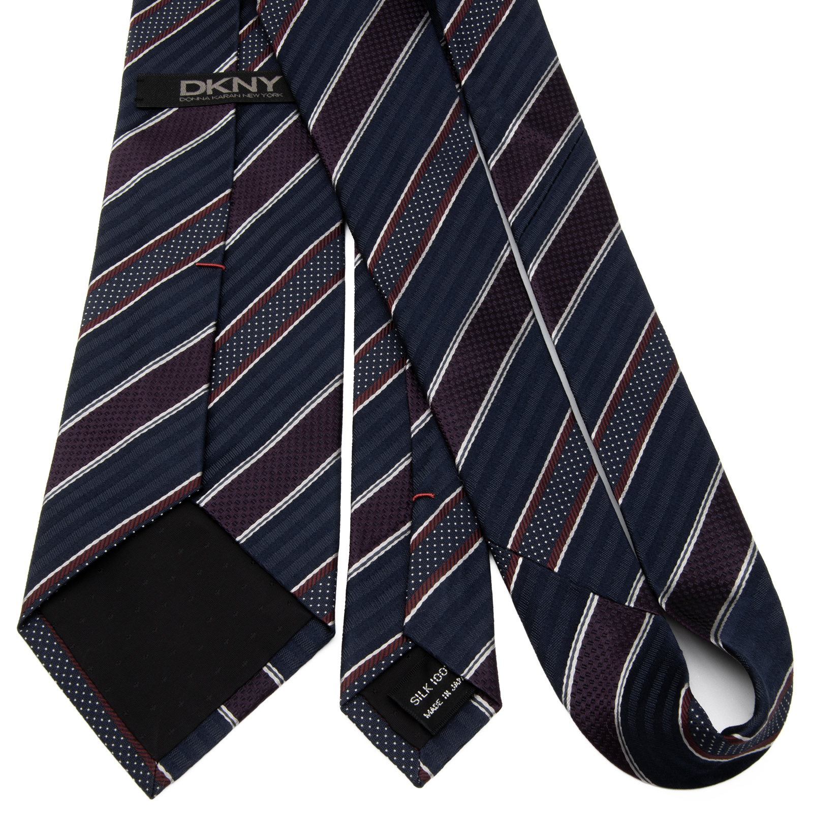 こちらは複数の質感がモダンに調和する、ダナキャランのネクタイでございます。