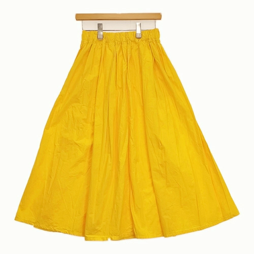 DMG Typewriter Cross Maxi Skirt 17-429X, Gathered Long Skirt, Yellow, Women's, DMG/Domingo [Pre-owned], 5-0710M