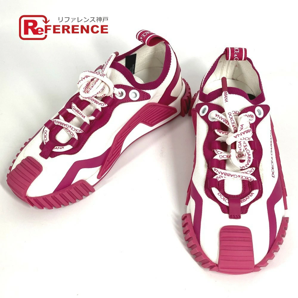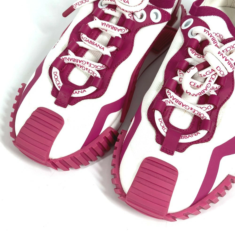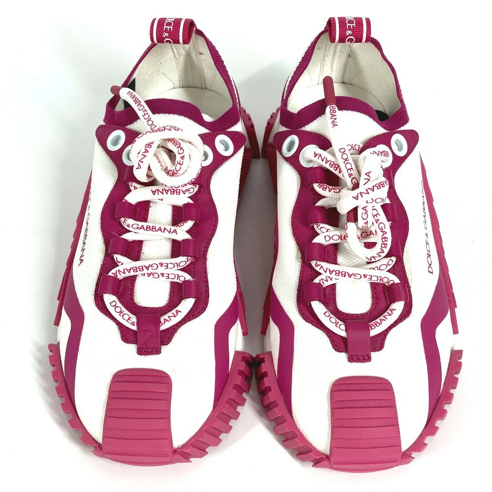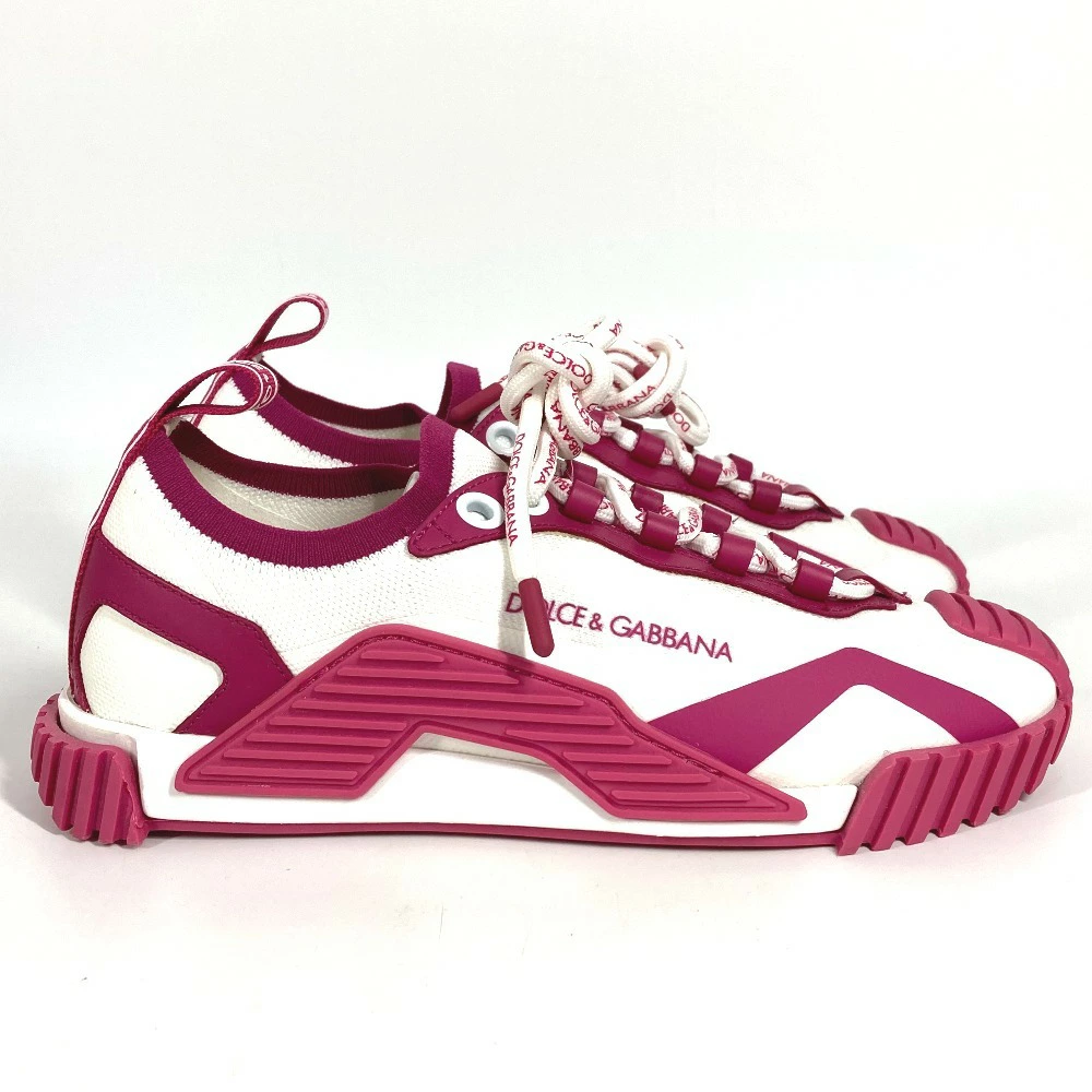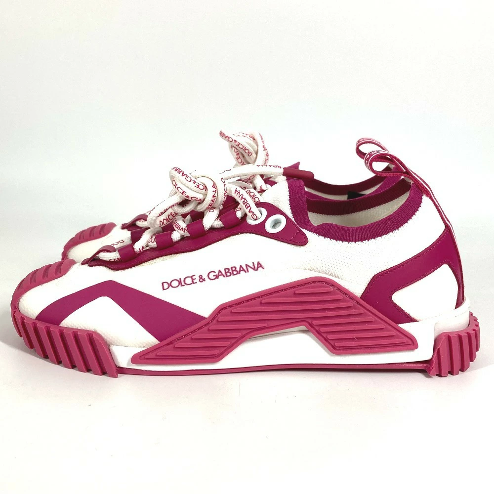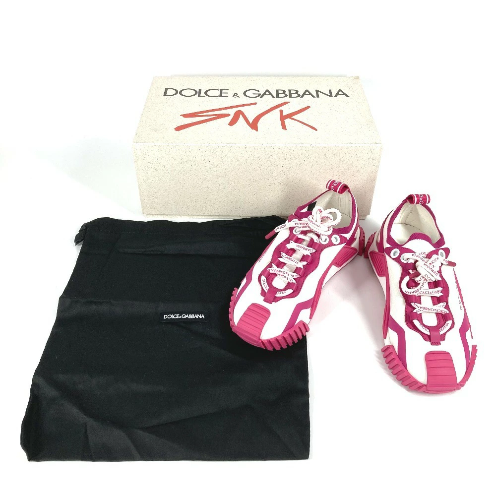 DOLCE & GABBANA all-logo shoes, lace-up sneakers, fabric, women's, pink, unused [pre-owned]