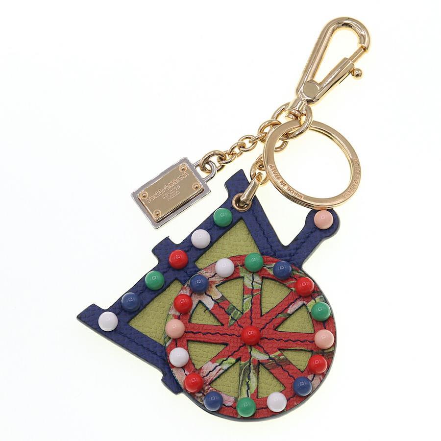 ドルチェ&ガッバーナキーホルダーBI0722ブルーゴールド金具レザーメタル中古キーリングバッグチャームレディースDOLCE&GABBANA
