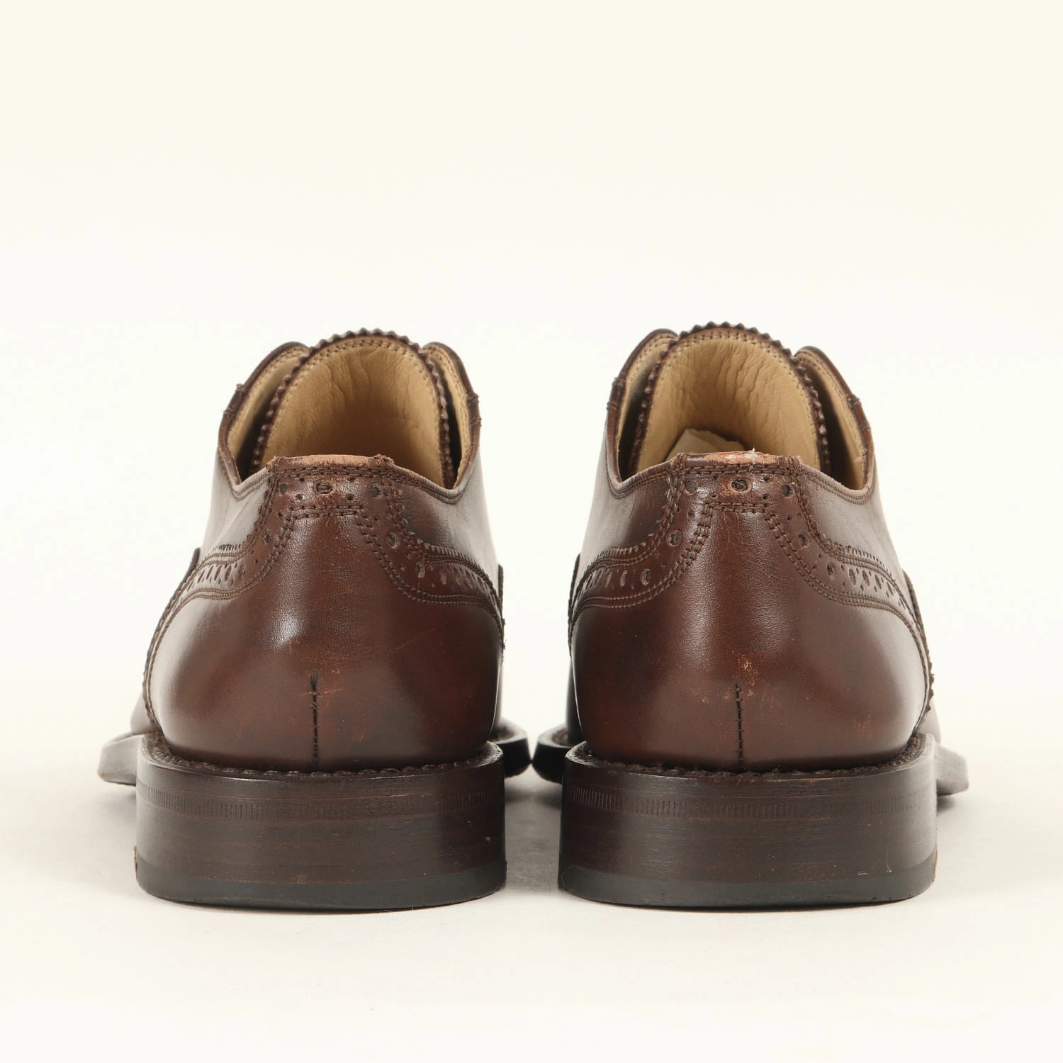 | 商品説明 | こちらはアッパーにレザーを使用し、メダリオン装飾、内羽根仕様で仕上げられたウイングチップシューズになります。 |