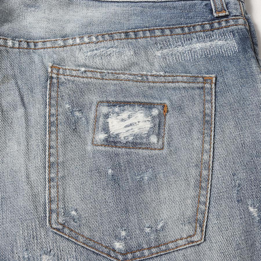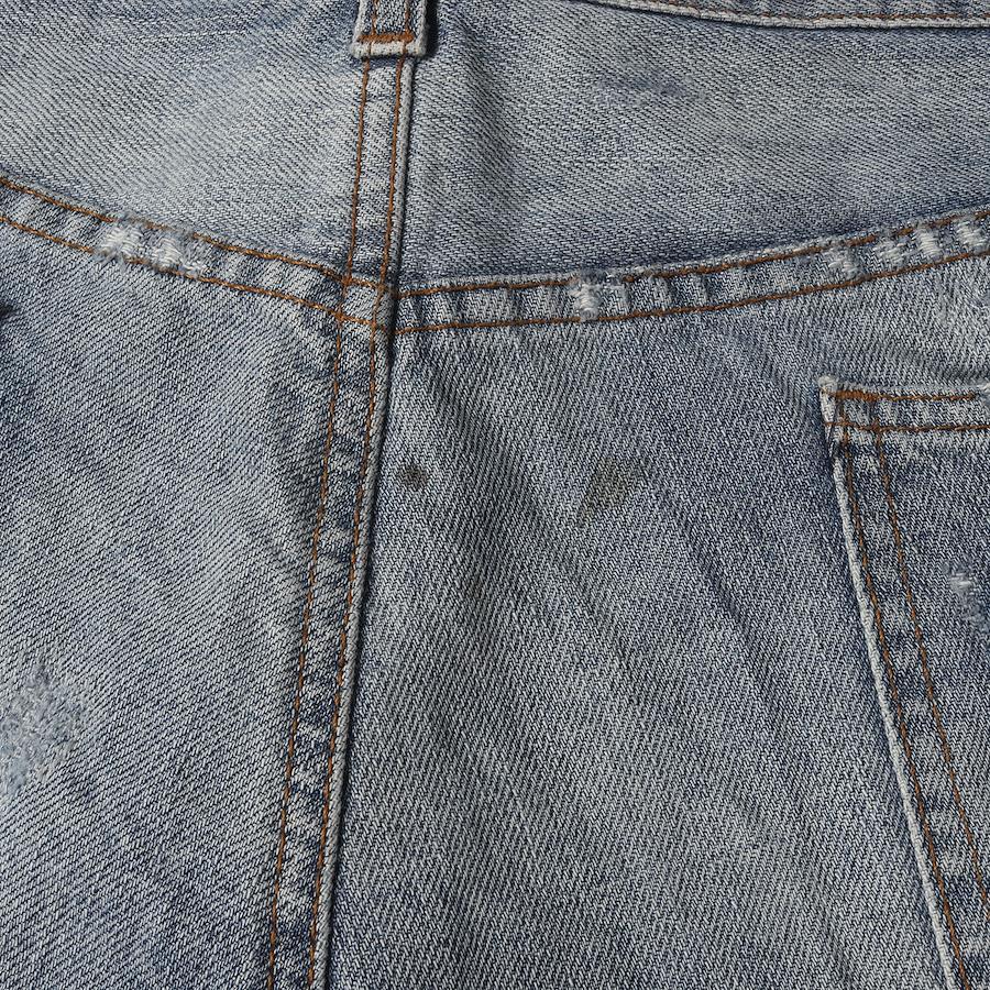 | 商品説明 | ヴィンテージ、ダメージ、ダメージリペア加工を施した、ローライズストレートシルエットのジッパーフライデニムパンツになります。 |