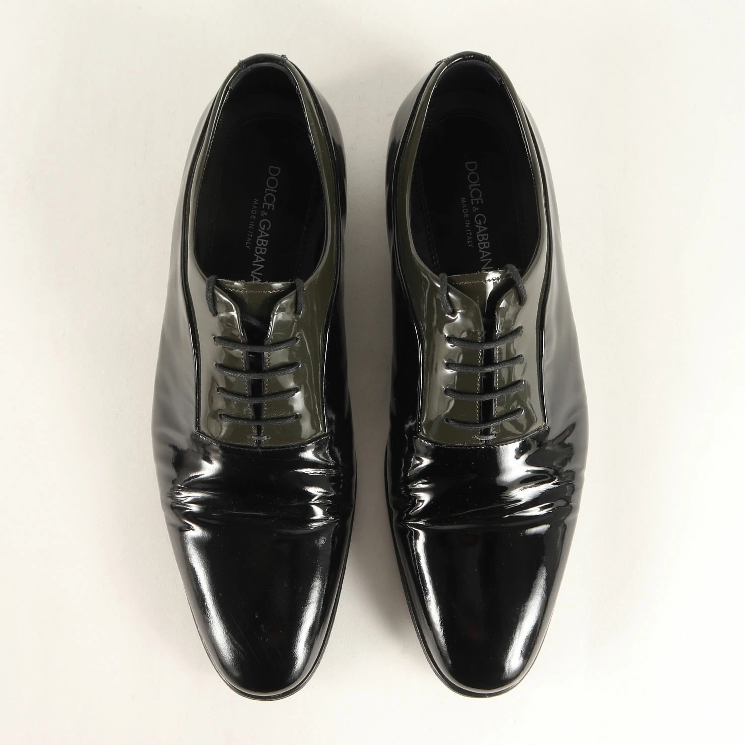 | 商品説明 | パテントレザーを使用したレースアップタイプのドレスシューズです。シックなツートーンカラーがポイントです。 |