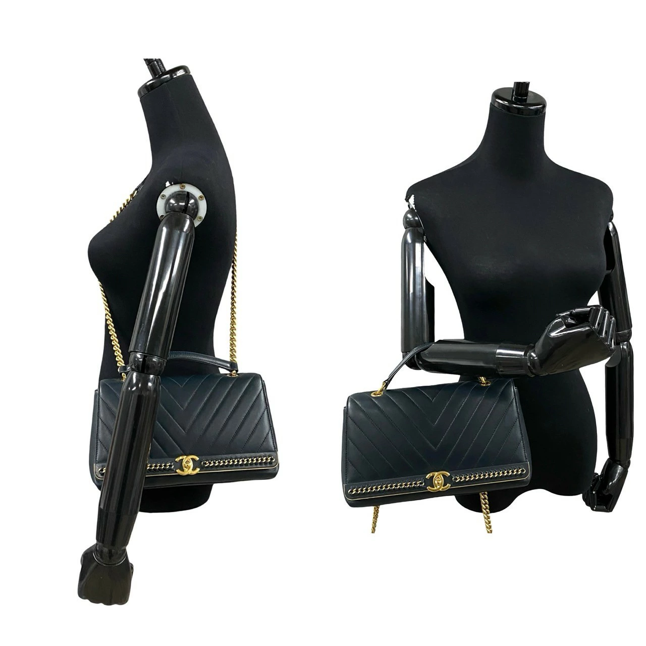 [Double Points] Excellent Condition, Bag Included, Sticker Included, CHANEL Coco Mark, V-Stitch, Lambskin, 2-Way Handbag/Shoulder Bag, Navy, 11568 [Pre-owned]