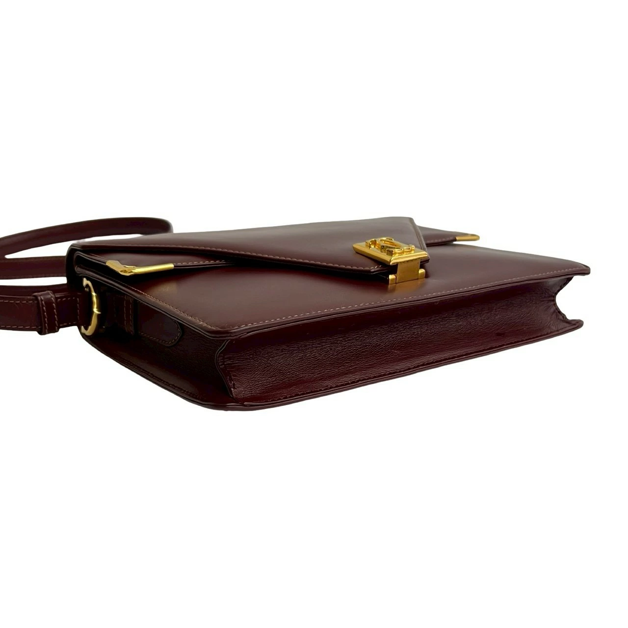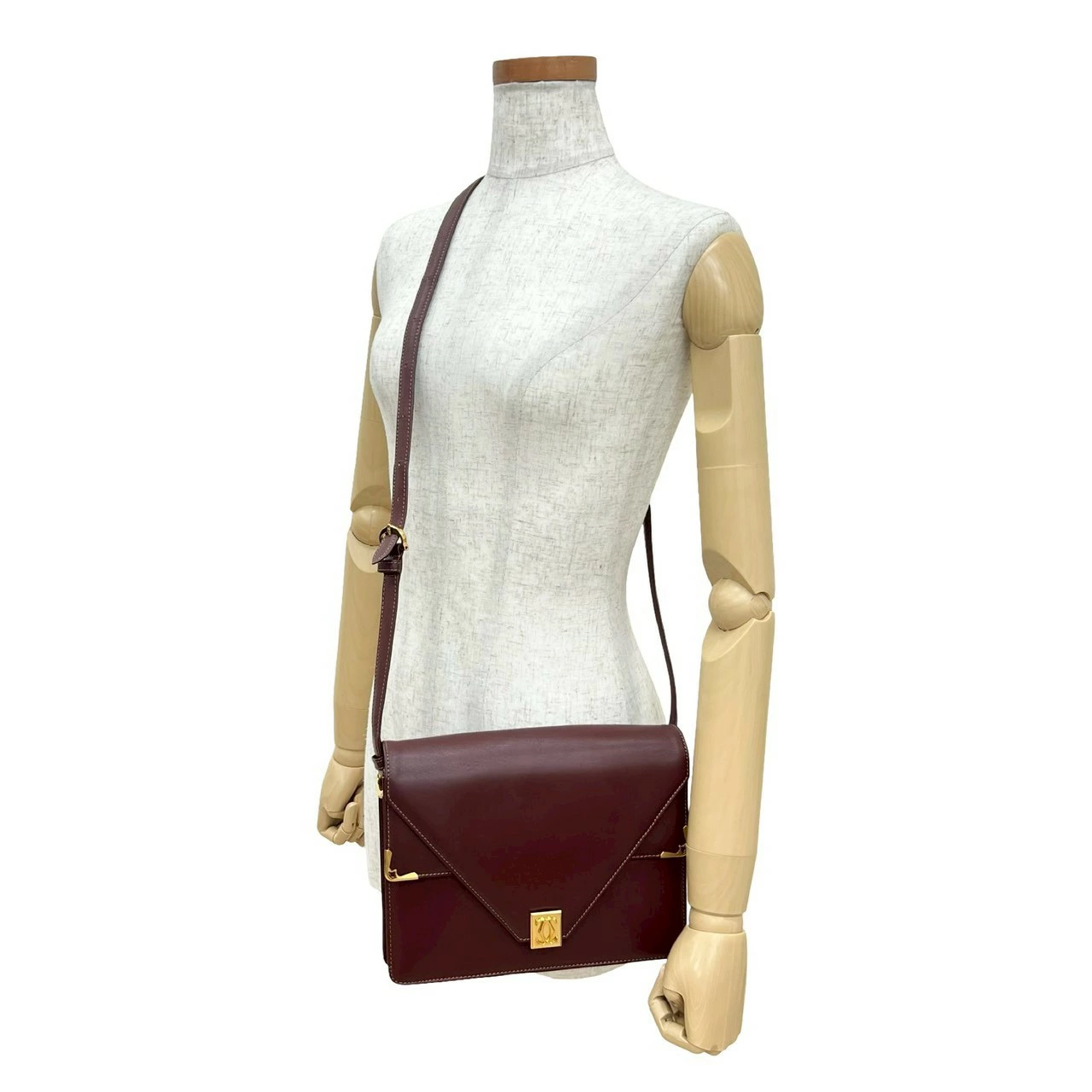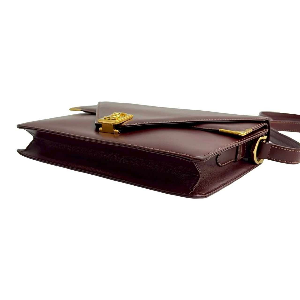 [Double Points] Excellent Condition, Dust Bag Included, CARTIER Must Line Logo, Metal Hardware, Genuine Leather, One-Shoulder Bag/Pochette, Wine Red, 45994 [Pre-owned]