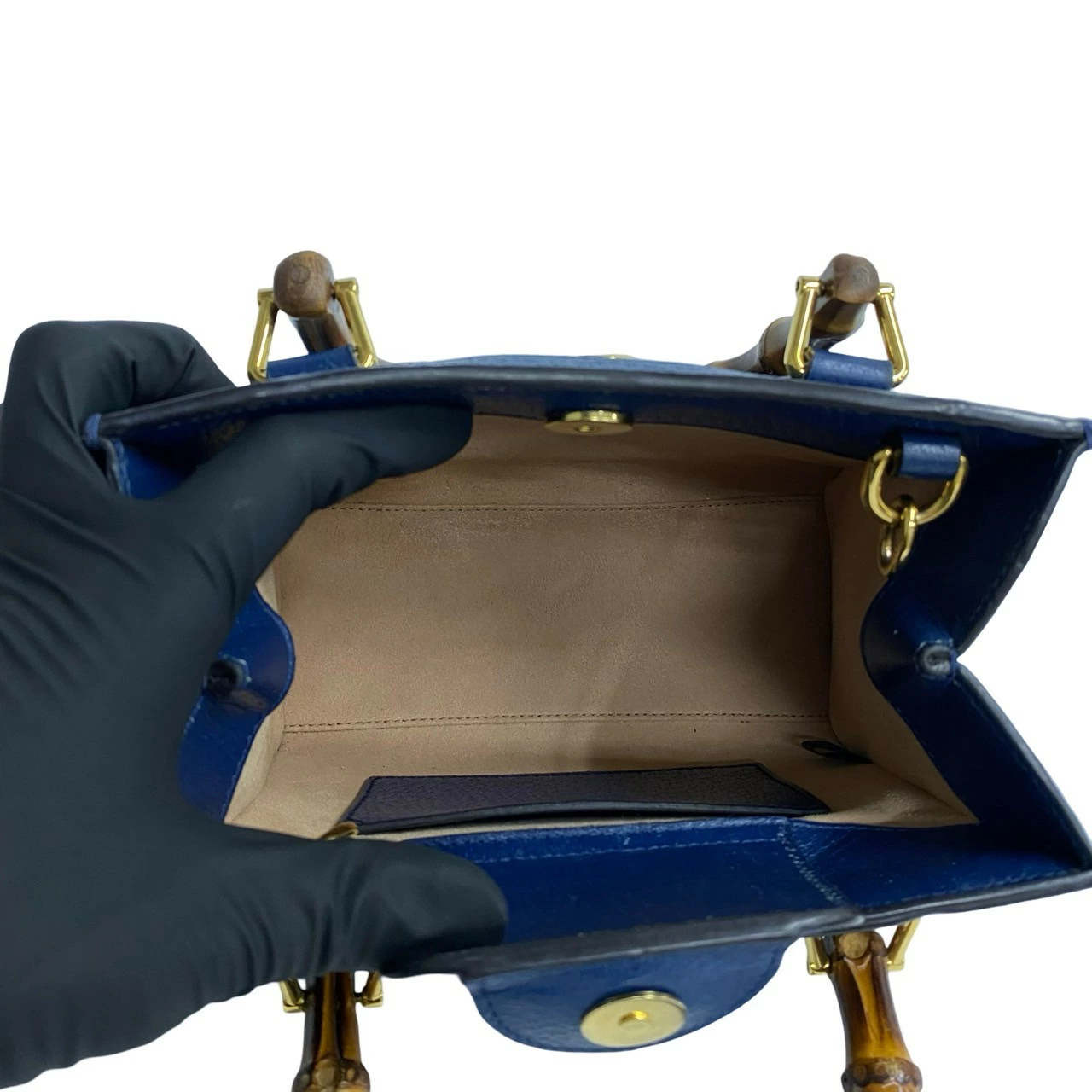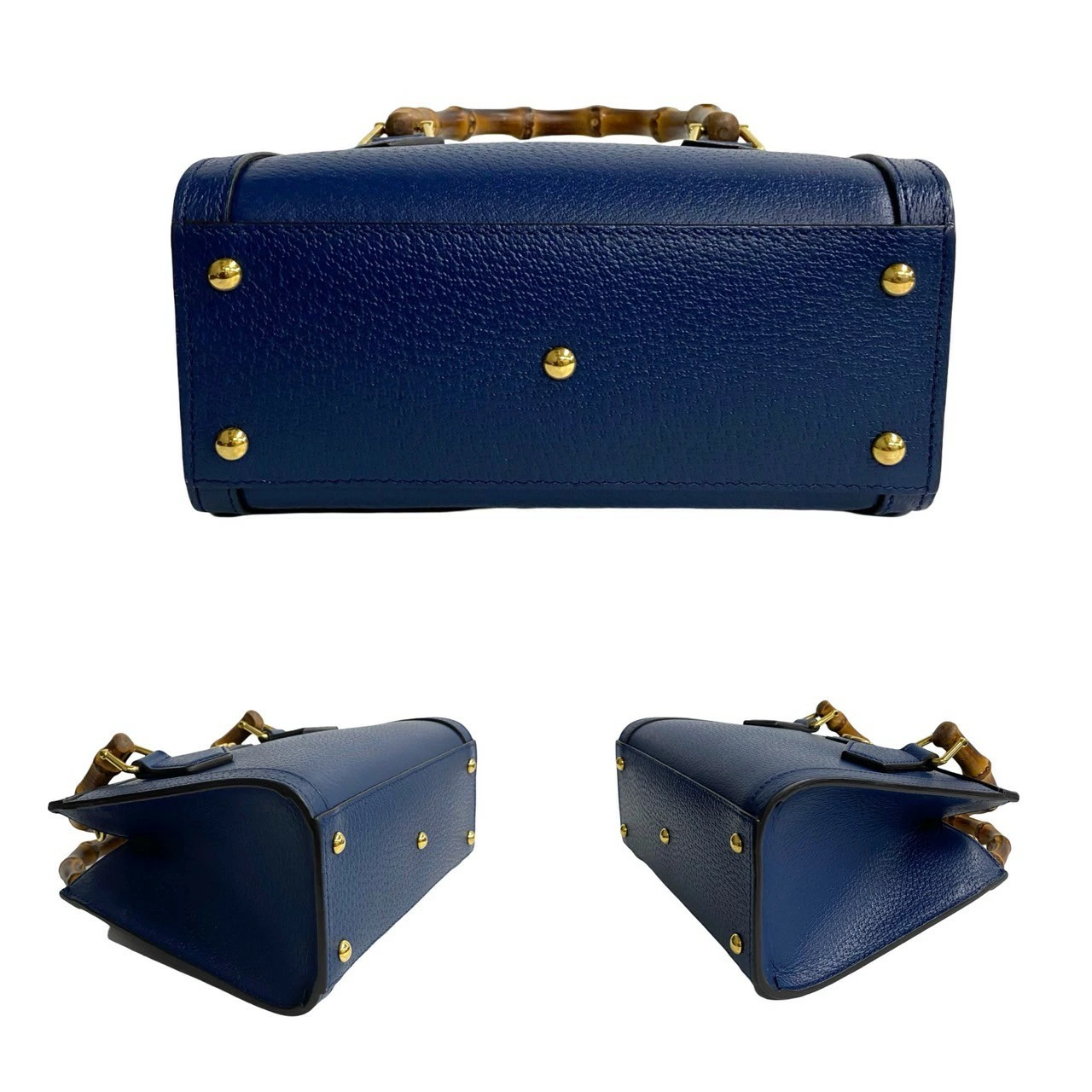 [Double Points] Excellent Condition GUCCI Diana Tote, Sherry Line, Bamboo, GG Logo, Leather, Genuine Leather, 3-Way Shoulder Bag/Handbag, Navy, 17468 [Pre-owned]