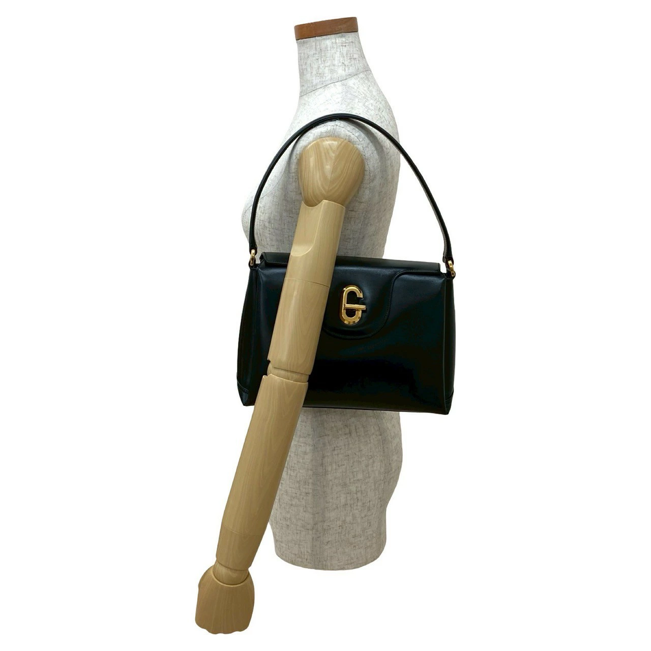 [Double Points] Excellent Condition GUCCI Vintage G Logo Turnlock Hardware Calfskin Leather Handbag in Black 804-4 [Pre-owned]