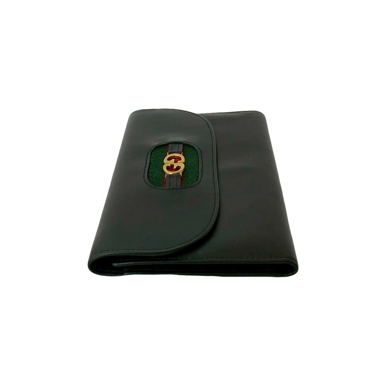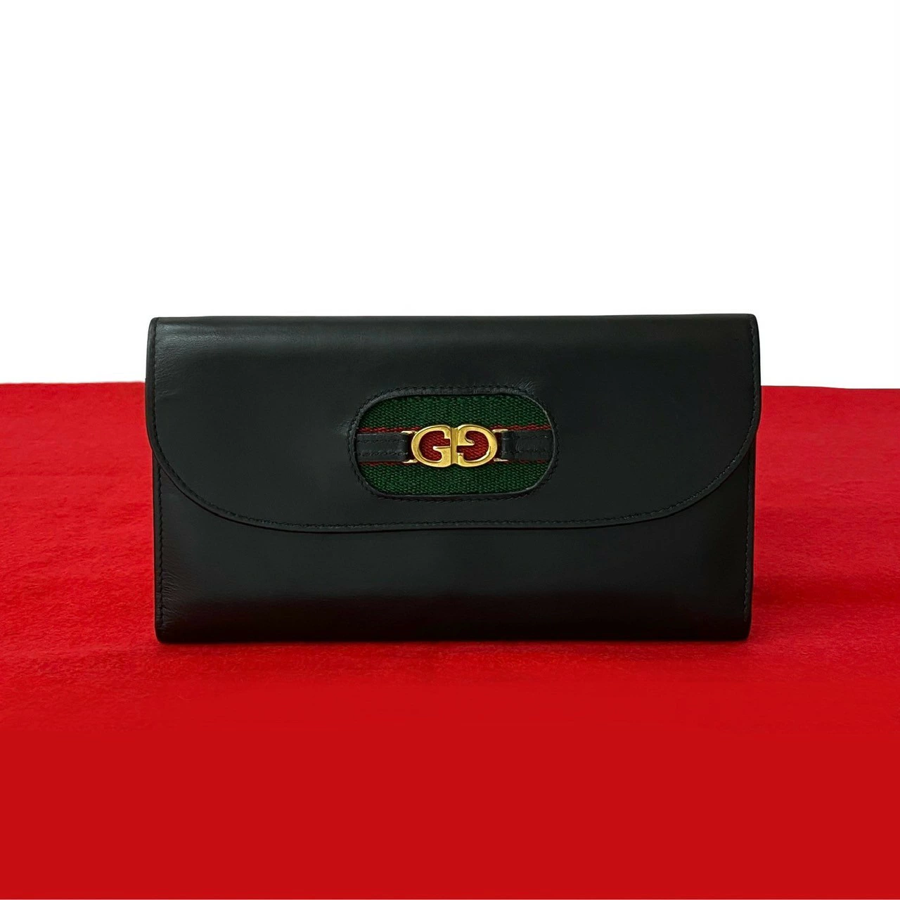 [Double Points] Excellent Condition GUCCI Vintage Sherry Line GG Logo Hardware Genuine Leather Long Wallet Black 20639 [Pre-owned]