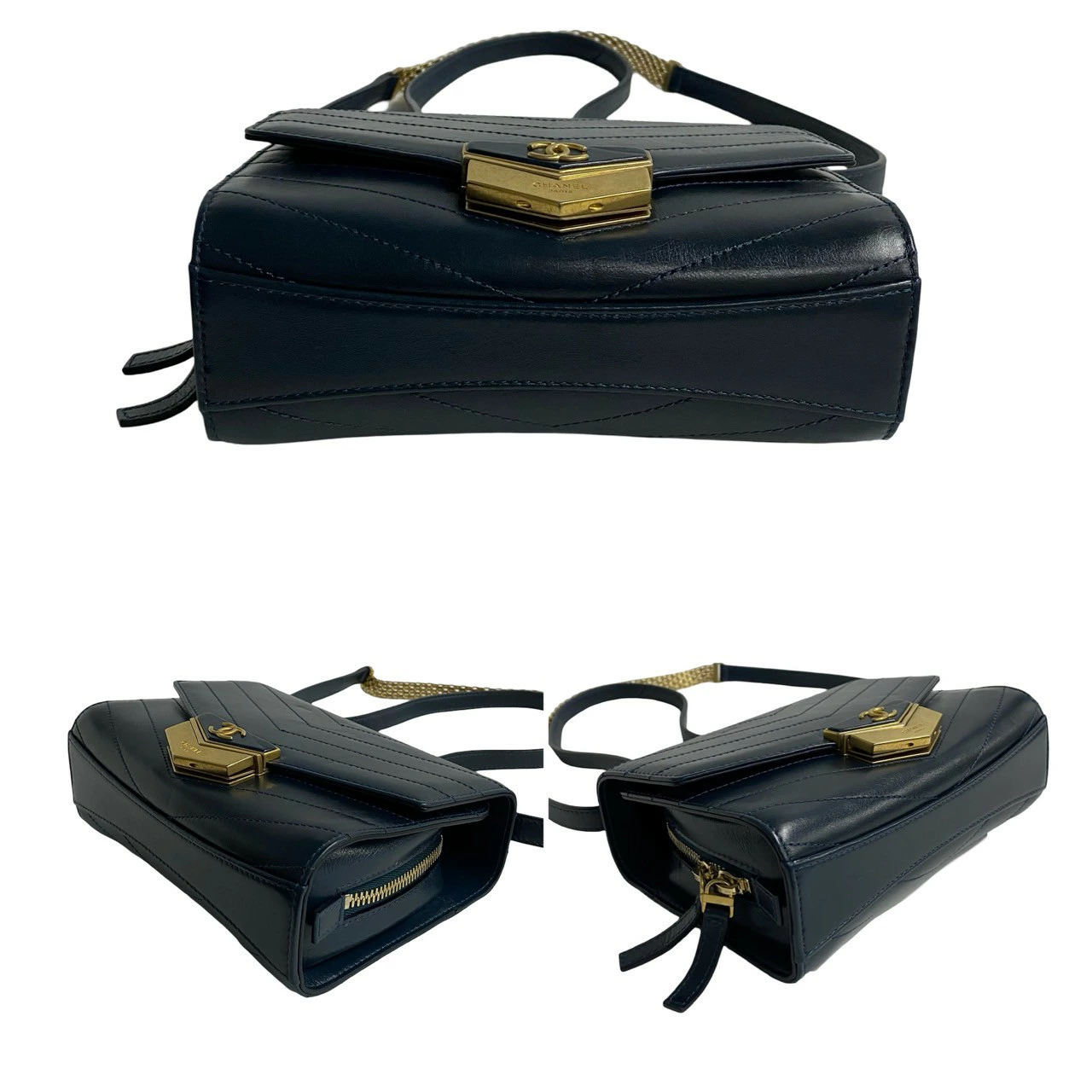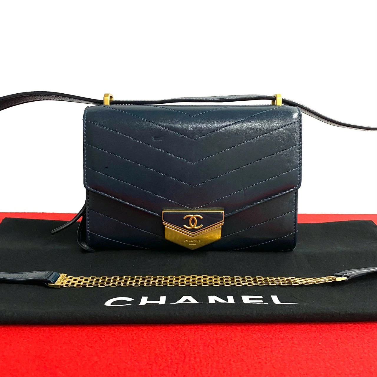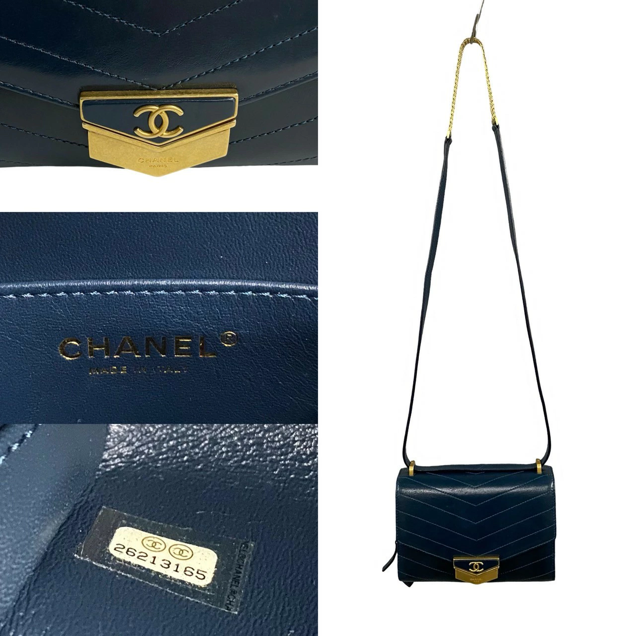 [Double Points] Excellent Condition, Seal Included, #26 Series CHANEL Coco Mark, V-Stitched Lambskin Leather Shoulder Bag/Handbag, Navy Blue, 75743 [Pre-owned]