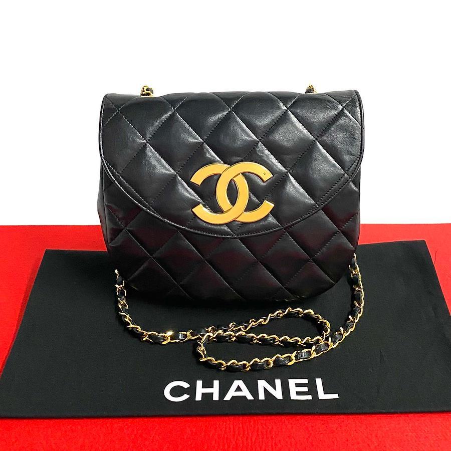 [Double Points] Excellent Condition, Seal Included, CHANEL Matelasse Coco Mark Lambskin Chain Shoulder Bag, Black, 719-7 [Pre-owned]
