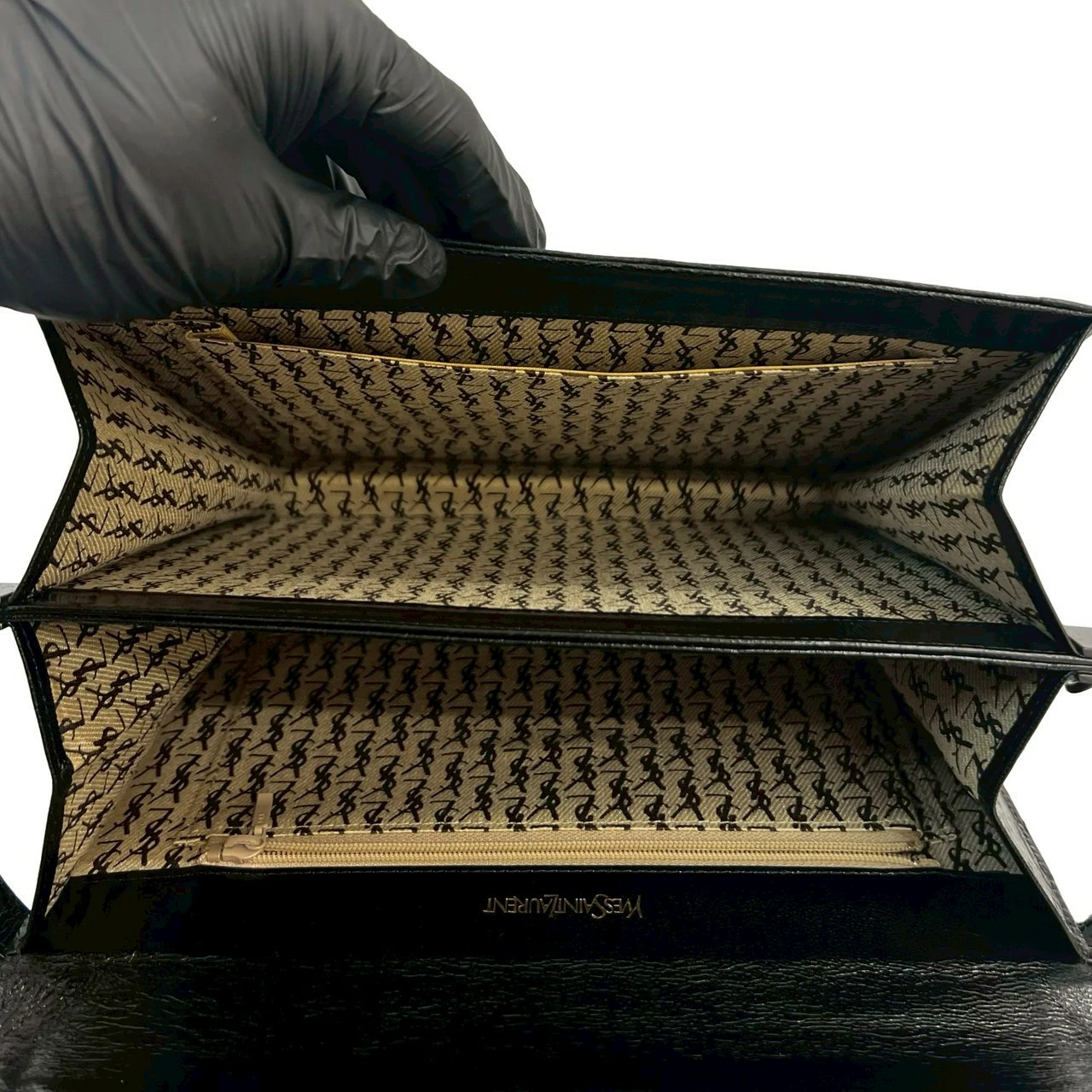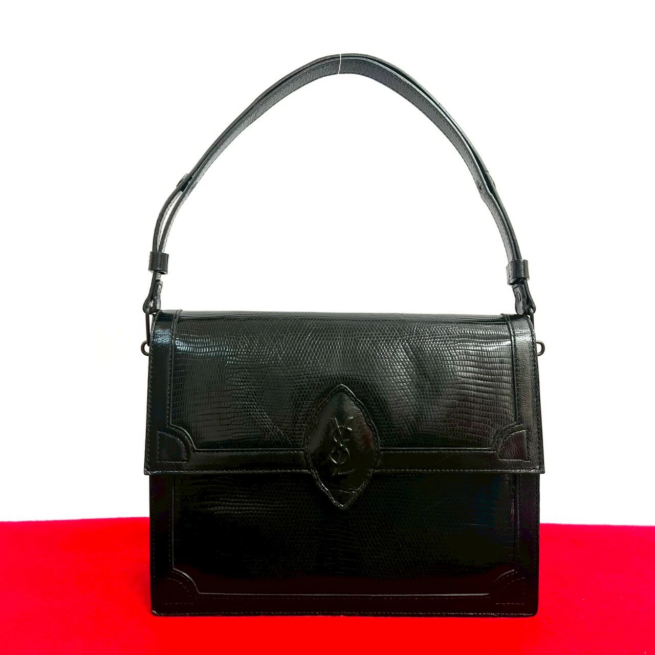 [Double Points] Excellent Condition Yves Saint Laurent Vintage YSL Logo Leather One Semi Shoulder Bag/Handbag in Black (3460n) [Pre-owned]