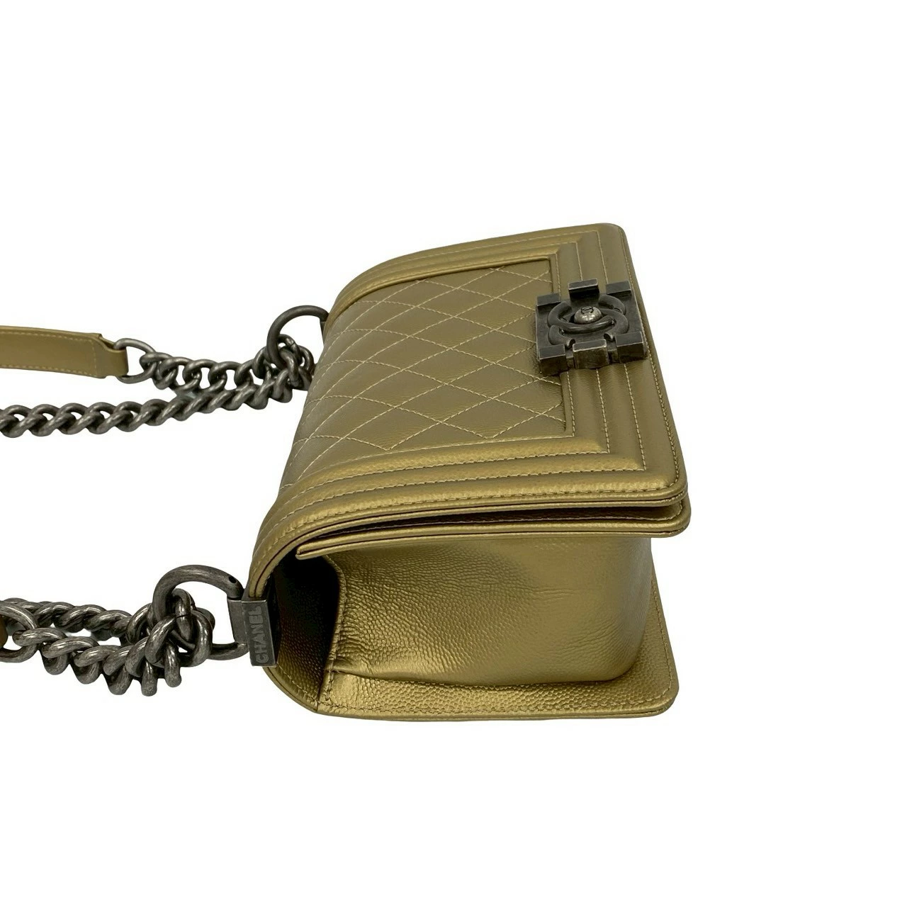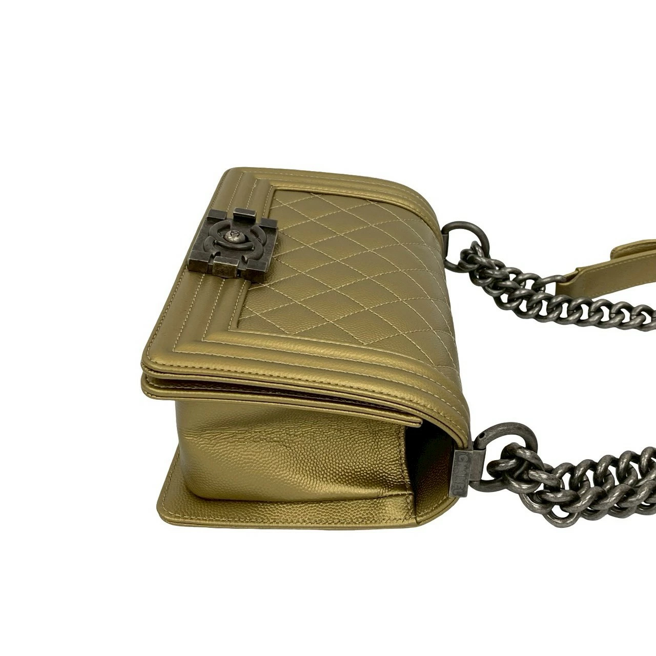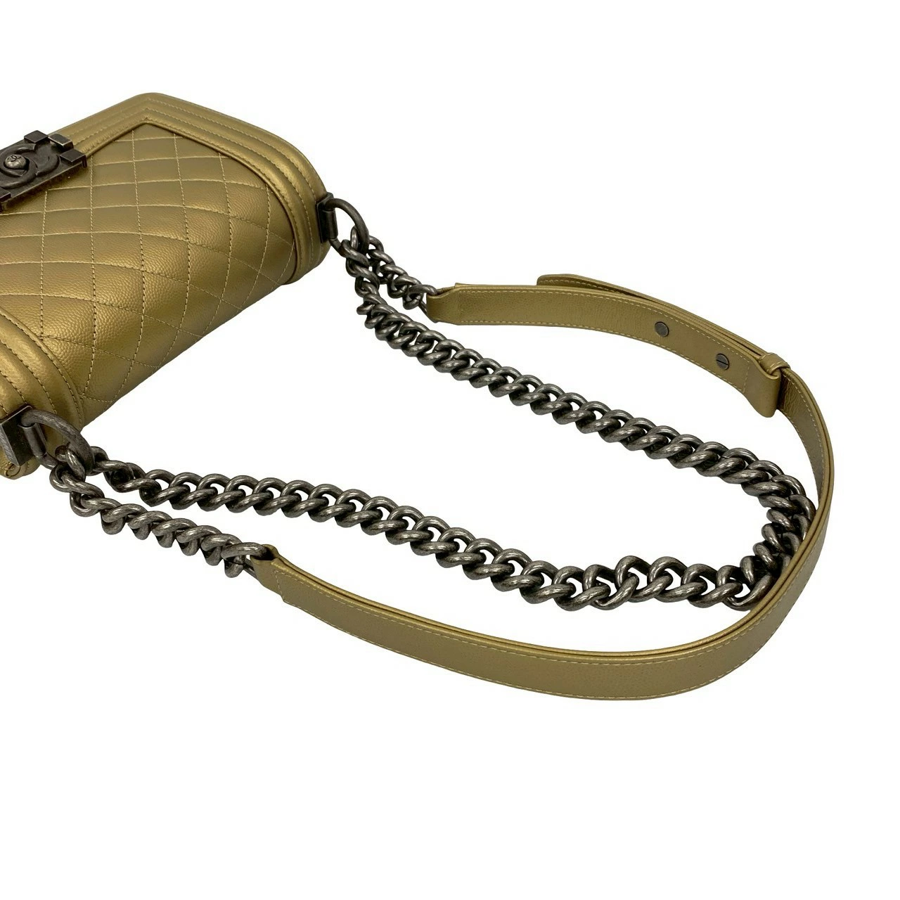 [Double Points] Nearly Unused, Comes with Bag, Card, and Sticker, CHANEL Boy Chanel Caviar Skin Chain Shoulder Bag, Gold, 26359 [Pre-owned]