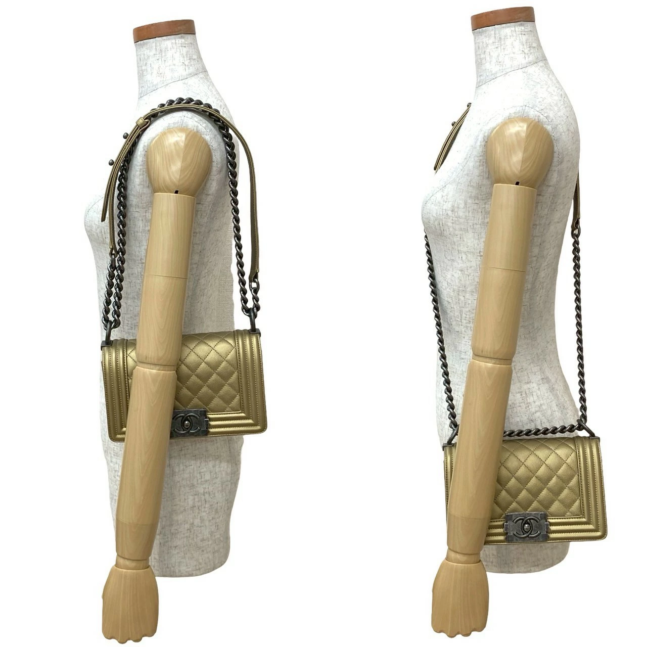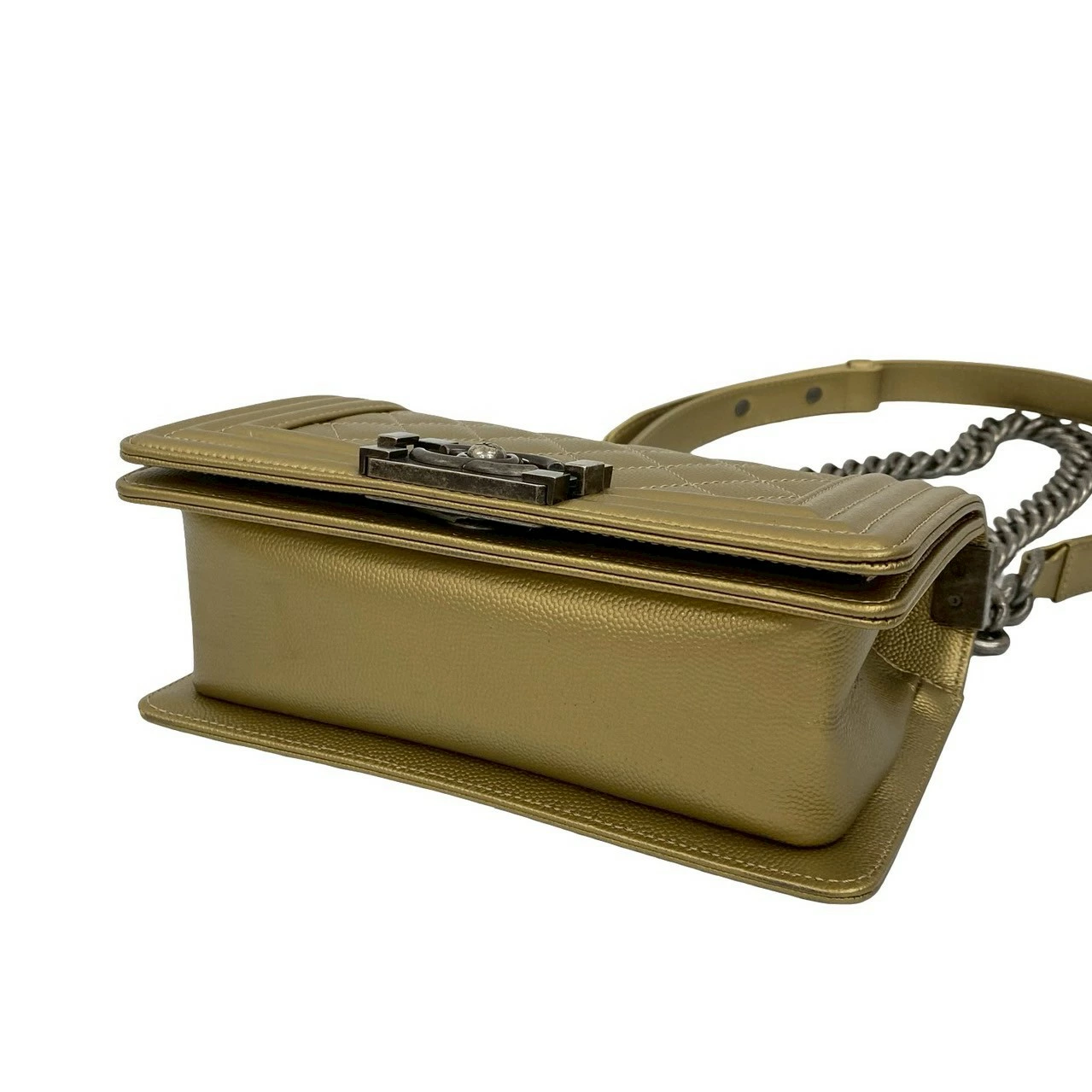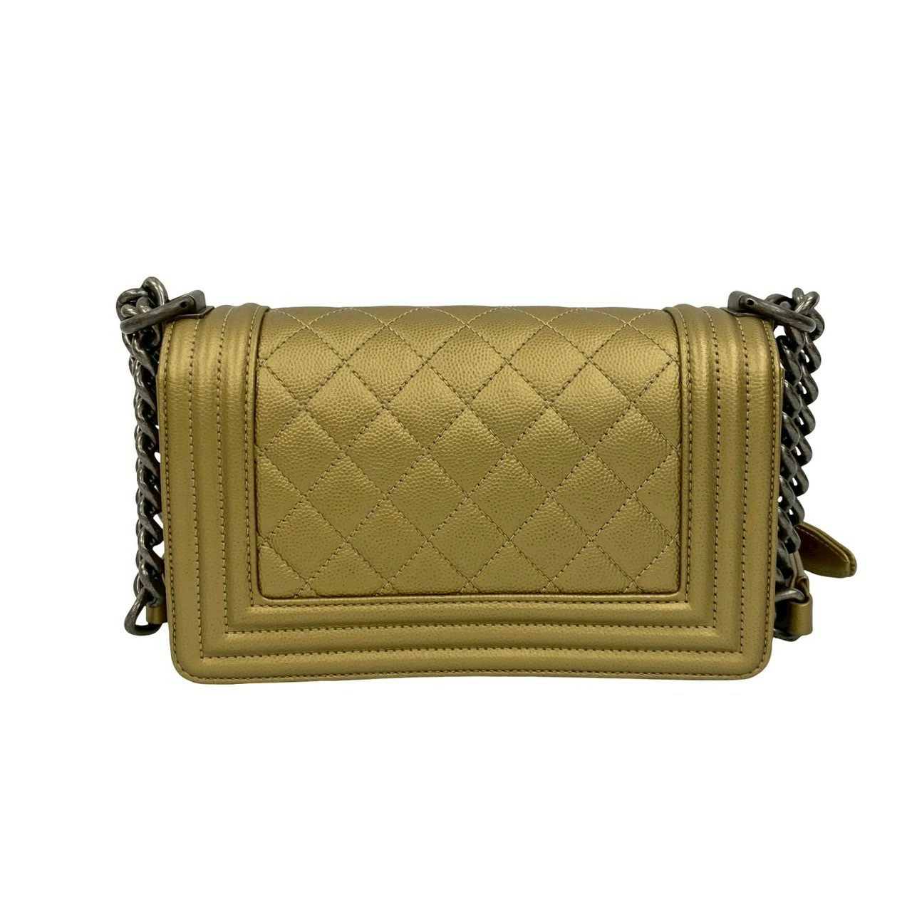[Double Points] Nearly Unused, Comes with Bag, Card, and Sticker, CHANEL Boy Chanel Caviar Skin Chain Shoulder Bag, Gold, 26359 [Pre-owned]
