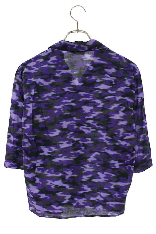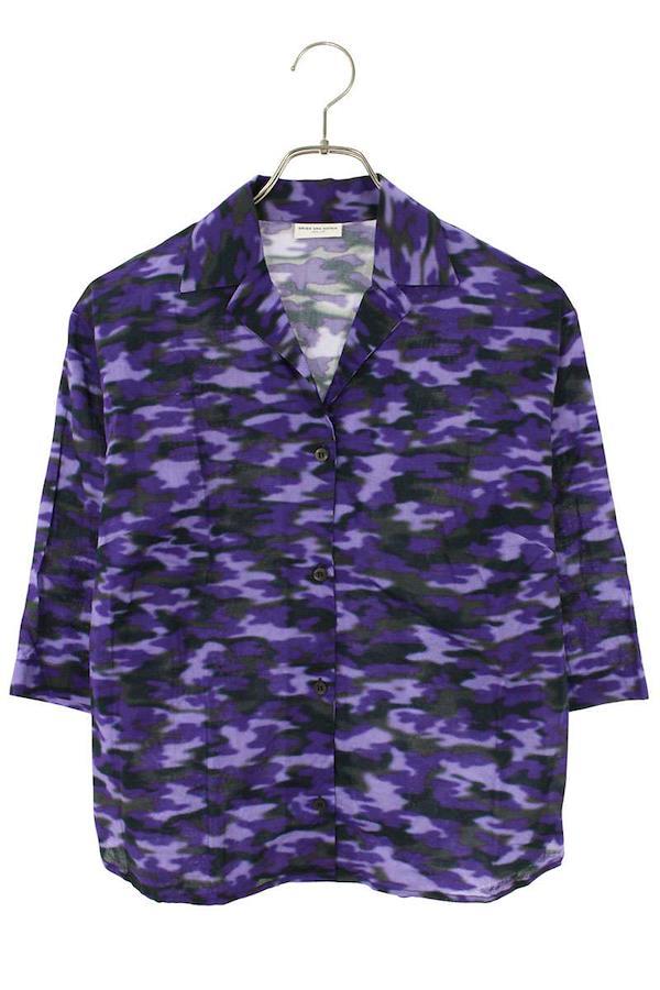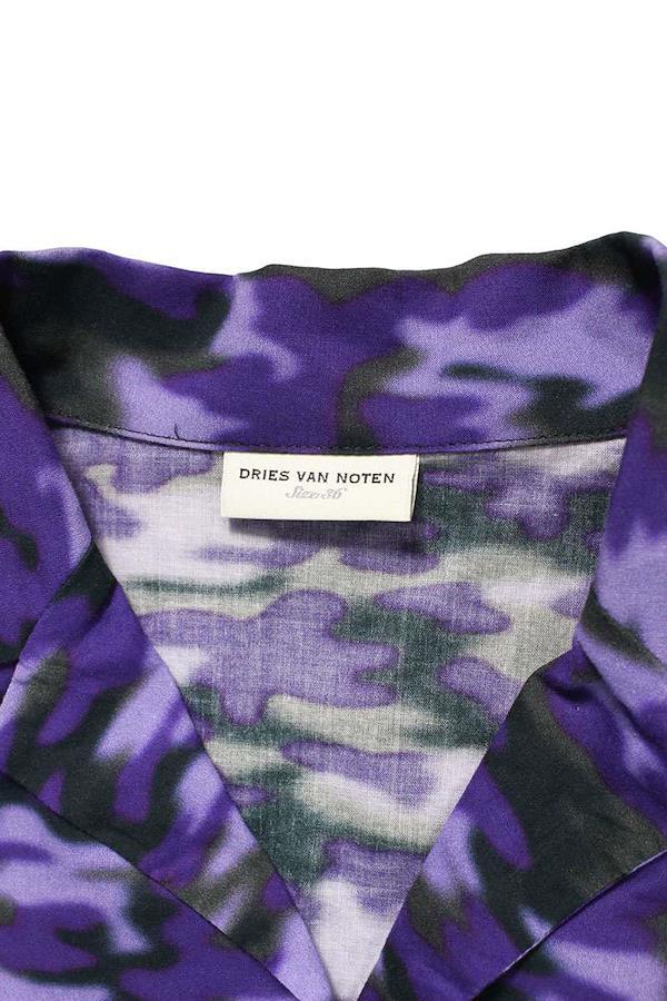 DRIES VAN NOTEN Open-collar, Short-Length Camouflage Short-Sleeve Shirt (Purple and Black), Size 36, Women's, Pre-owned, Item Number 529052, BS99, bb455#rinkan*B