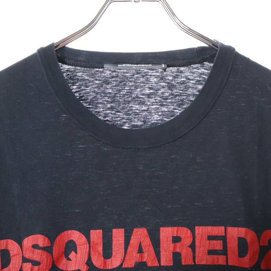 Dsquared 19AW Front Logo Print Crew Neck Short Sleeve T-Shirt Cut and Sew Black S74GD0592 S22507 L Black
