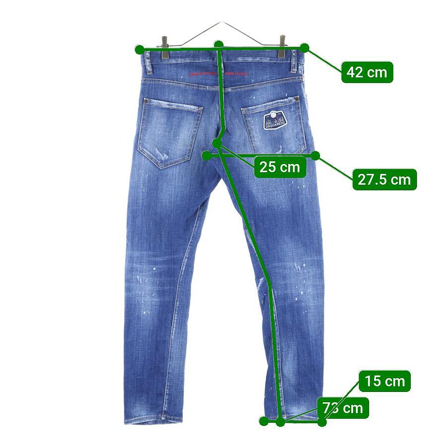 [サイズ]ウエスト:42センチ ワタリ:27.5センチ 股上:25センチ 股下:73センチ 裾幅:15センチ