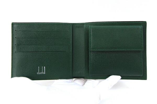 ダンヒル二つ折り財布クラブラインFT3001Bブラウングリーンエナメルレザー中古折り財布コンパクトウォレットバイカラーメンズ男性dunhill