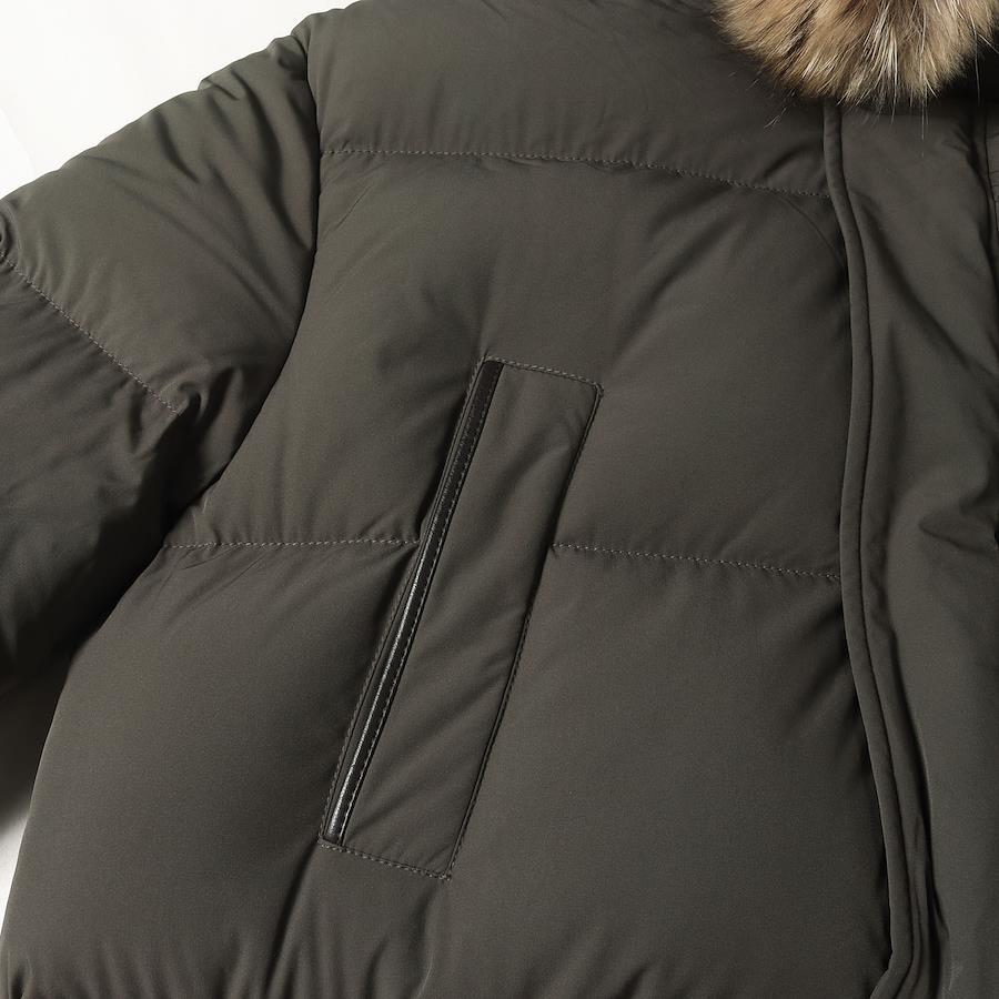 | 商品説明 | ・軽量なストレッチナイロン素材 ・取り外し可能なラクーンファー ・フロント フルジップ&スナップボタン ・パイピング、ポケットフラップ裏地 レザー仕様 ・フード内側 ドローコード付き ・左袖 レザーワッペン付き |