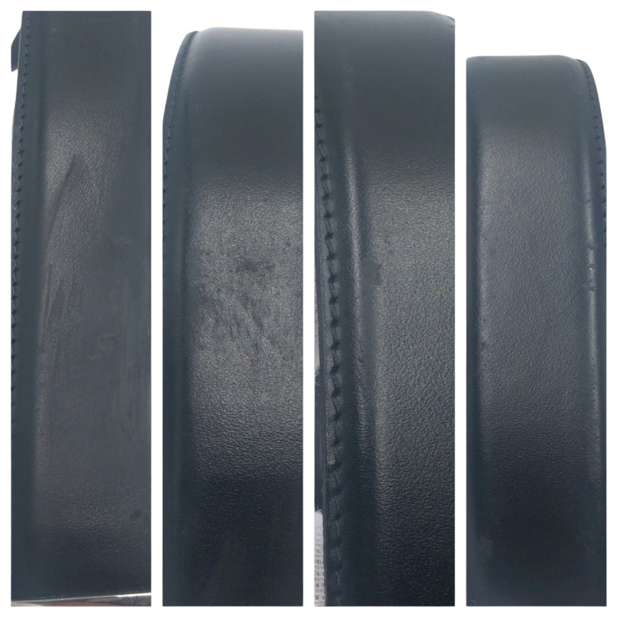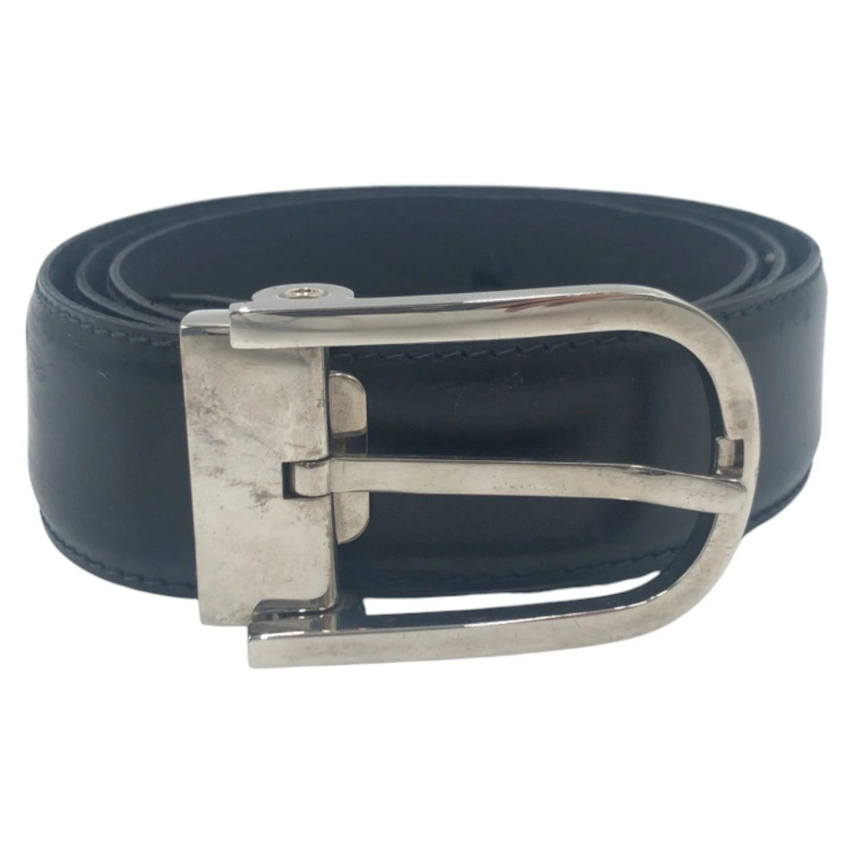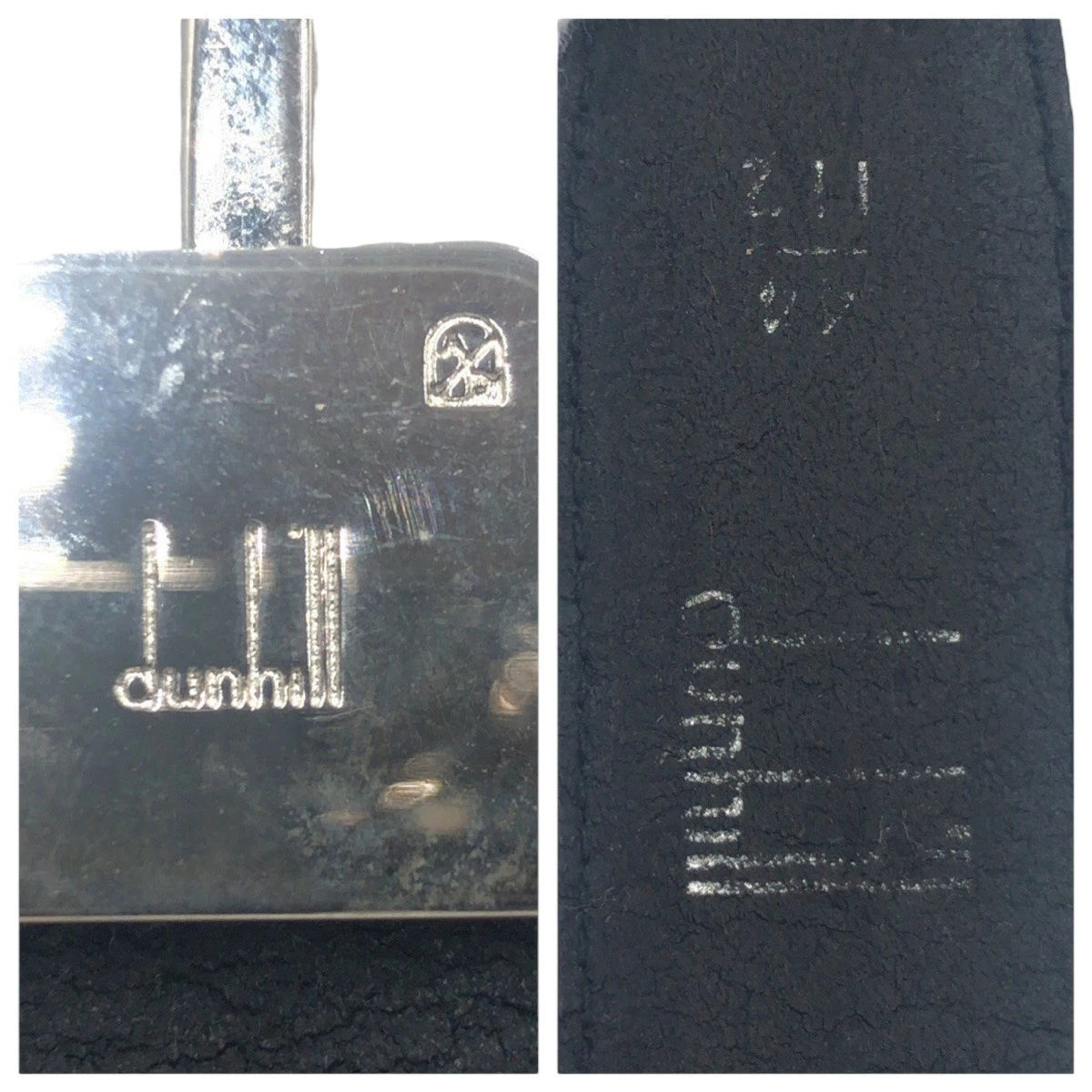 Dunhill Men's Black and Silver Leather/Metal Belt 411139 (Pre-owned)