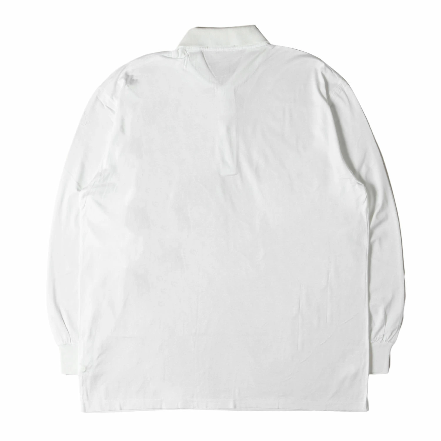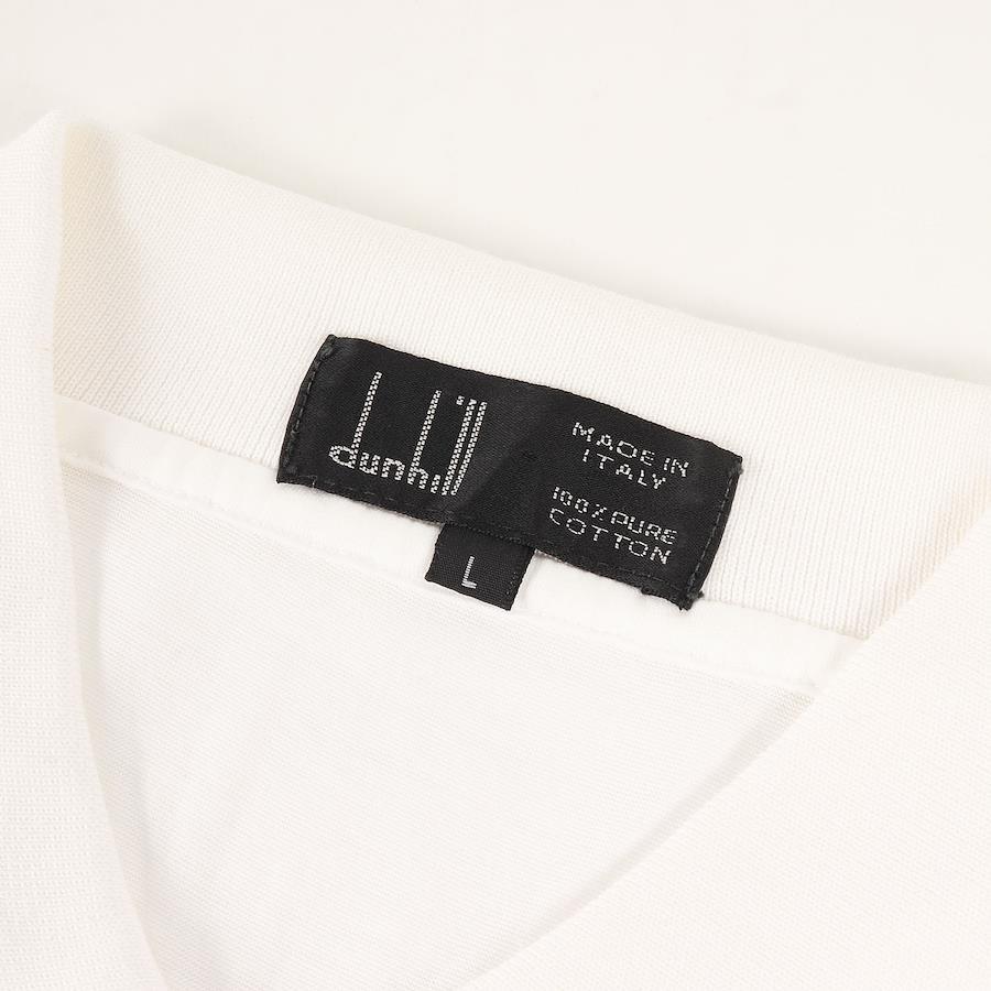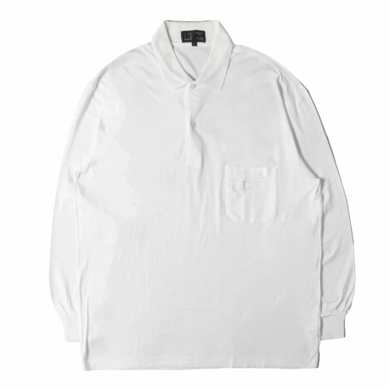 Dunhill Men's Polo Shirt, Size L, 90s Cotton Long Sleeve Polo Shirt, White, Cut and Sewn Top, Pre-owned, K4477