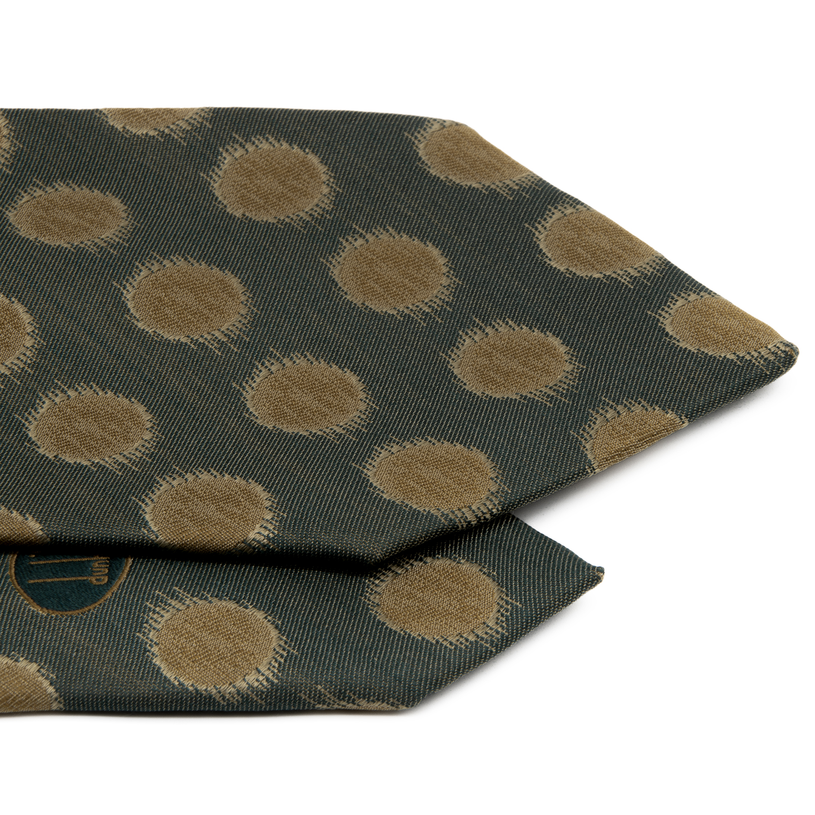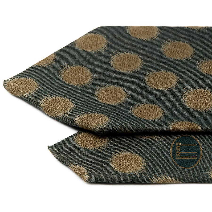 深みのあるグリーンのシルク地に、ゴールドのコインドットが上品に浮かび上がります。