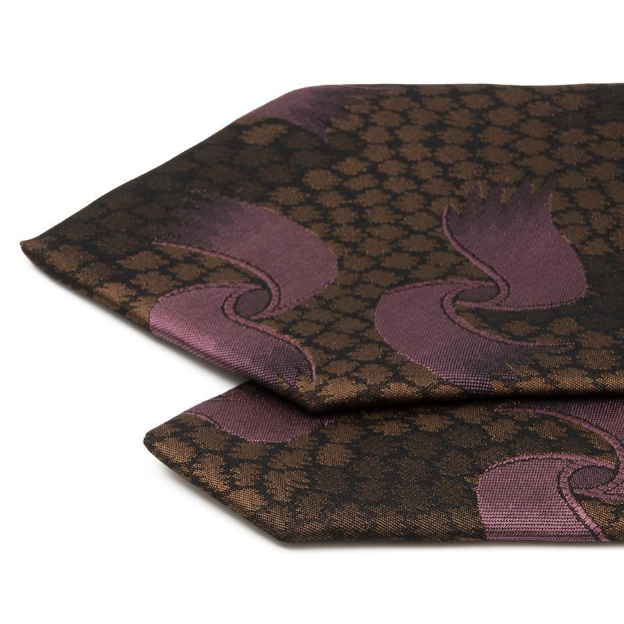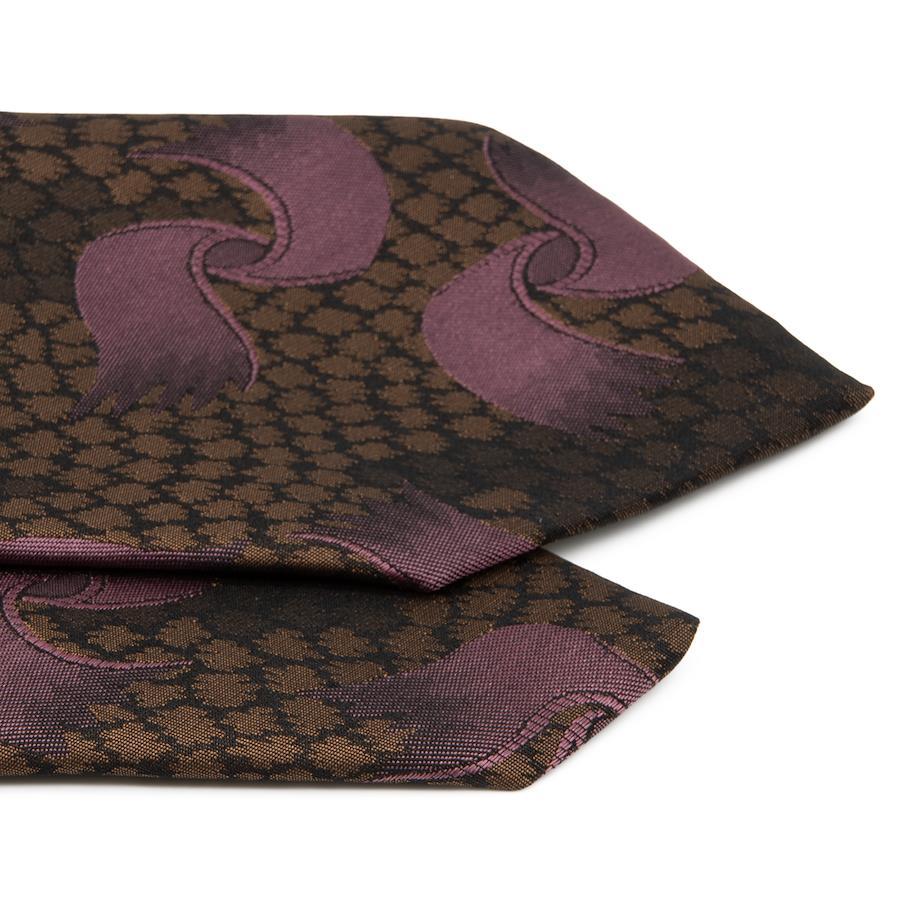 艶やかなブラウンの地に、ミステリアスなパープルのモチーフが浮かび上がる一本。