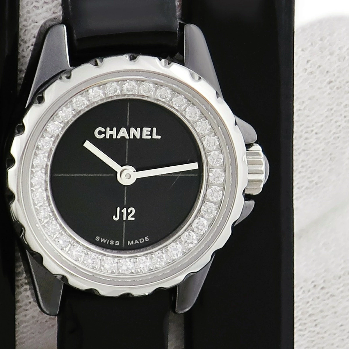 シャネル CHANEL J12 XS 19mm H4665 純正ダイヤモンド Wベルト 黒 エナメル レディース 腕時計クオーツ ブラック 【中古】【店頭受取不可】
