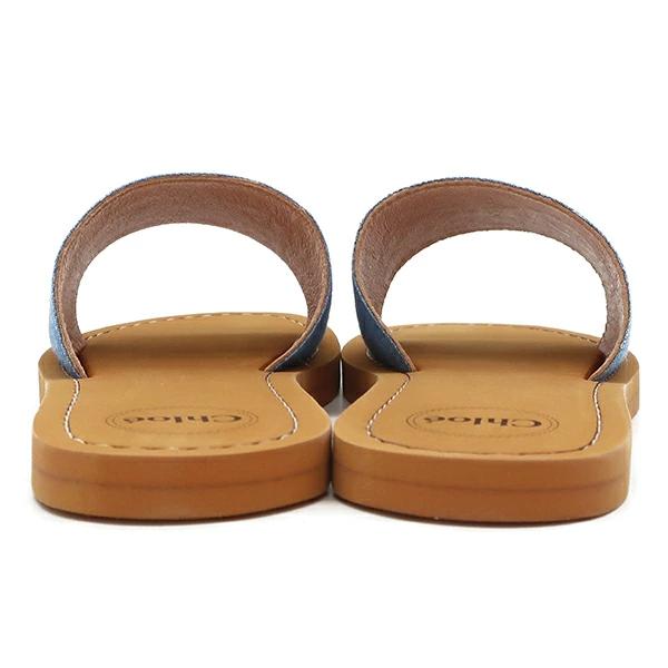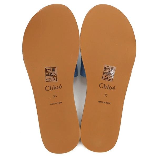 クロエ Chloe サンダル ウッディ テキスタイル エチレンビニルアセテート デニムブルー 新品 未使用 ロゴ フラットサンダル C20185Z10 #35 レディース 【箱】 【中古】
