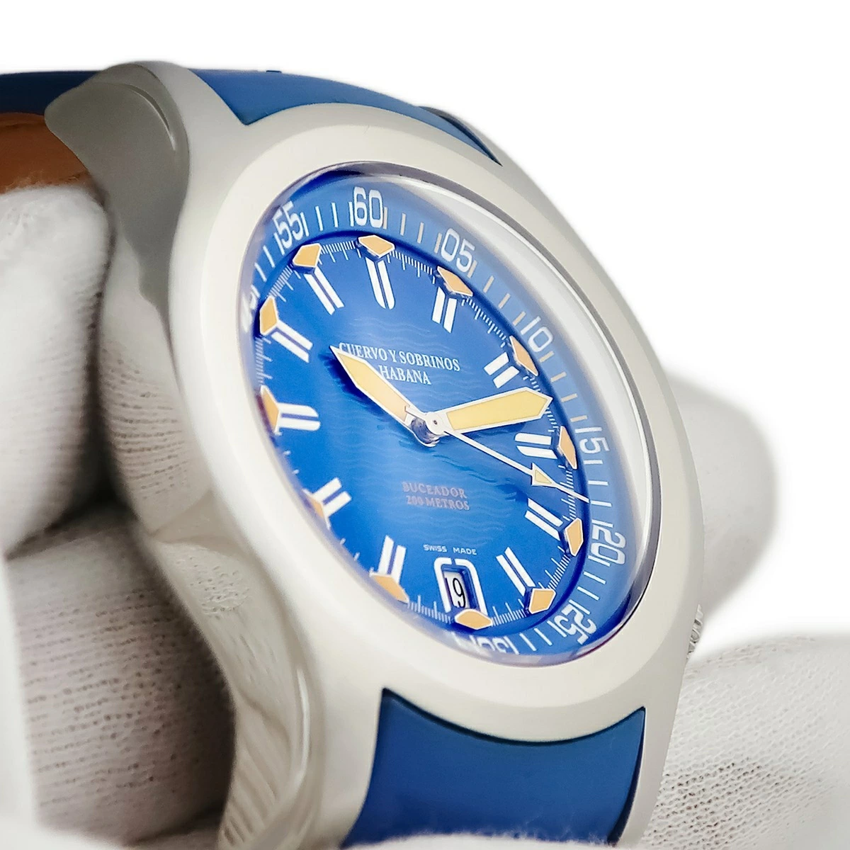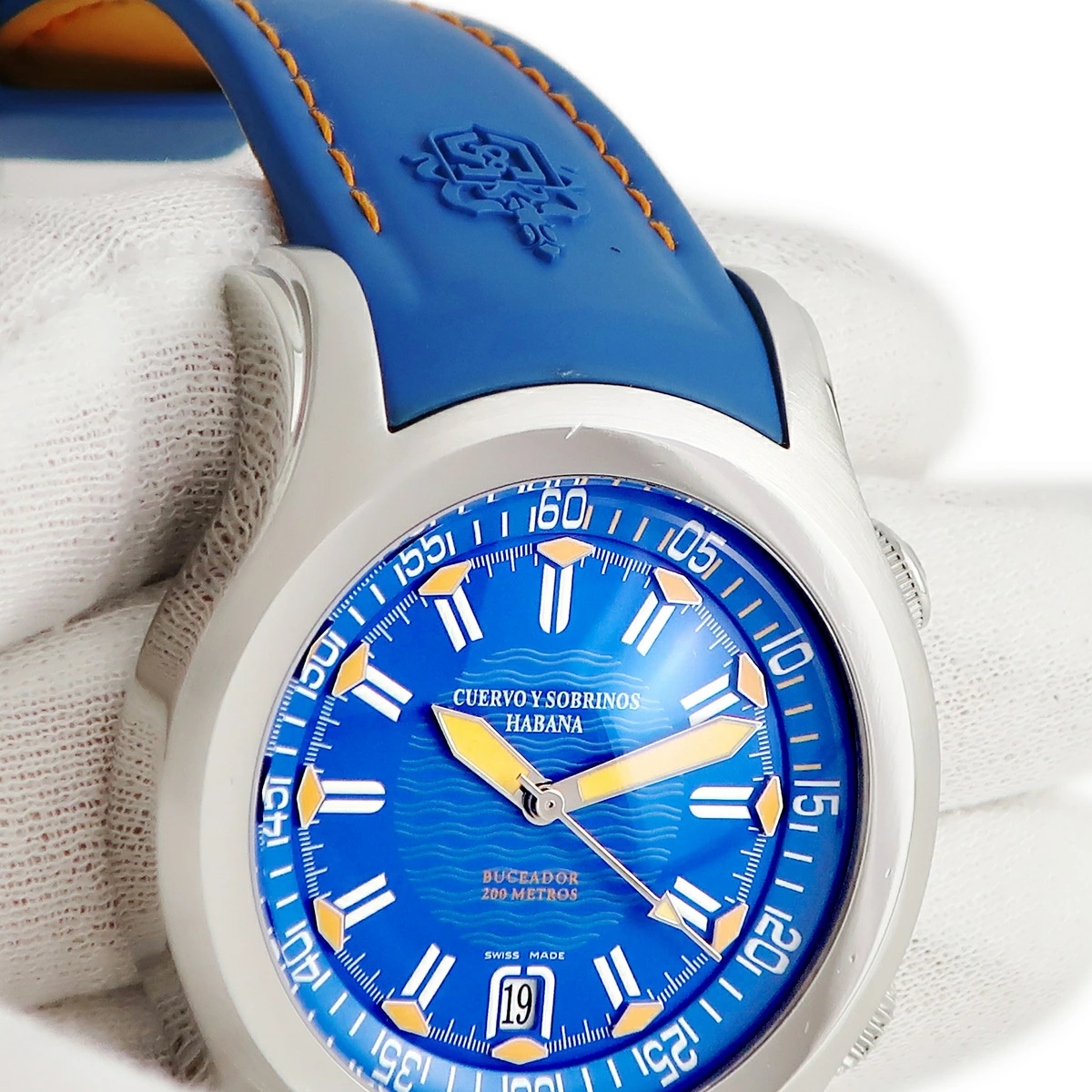 クエルボ・イ・ソブリノス CUERVO Y SOBRINOS ロブスト ブセアドール 2806-1BA ブルー デイト ダイバーズ 200m防水 メンズ 腕時計自動巻き ブルー 【中古】【店頭受取不可】