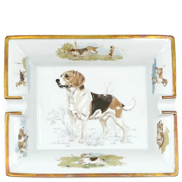 エルメス HERMES アッシュトレイ 灰皿 ビーグル 雑貨 陶磁器 ホワイト 白 小物入れ 犬柄 イヌ - メンズ 【箱】定番 人気 美品 【中古】