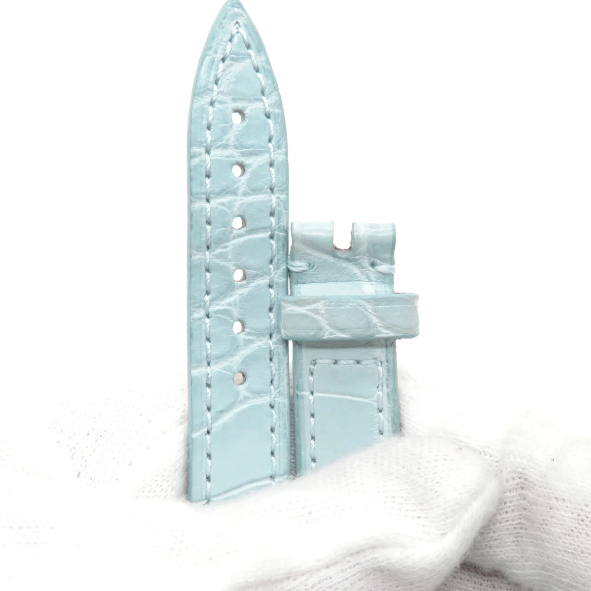 フランクミュラー FRANCK MULLER ロングアイランド(800/802)用 クロコバンド - 新同 純正 ベルト 12mm アイスブルー 水色 バネ棒付き レディース 腕時計 【中古】【店頭受取不可】