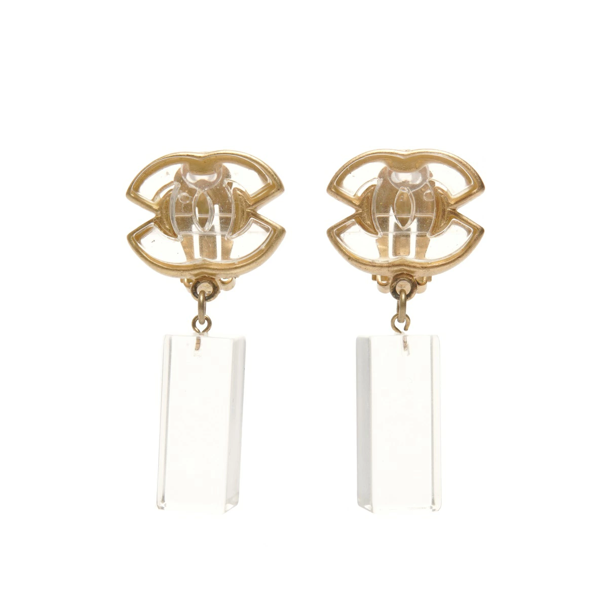 Earn 10x points with entry! + 20% off all items! Until 11/27 1:59 AM! CHANEL 01P 2001 Coco Mark Clear Square Earrings Gold WS24491 [Pre-owned]