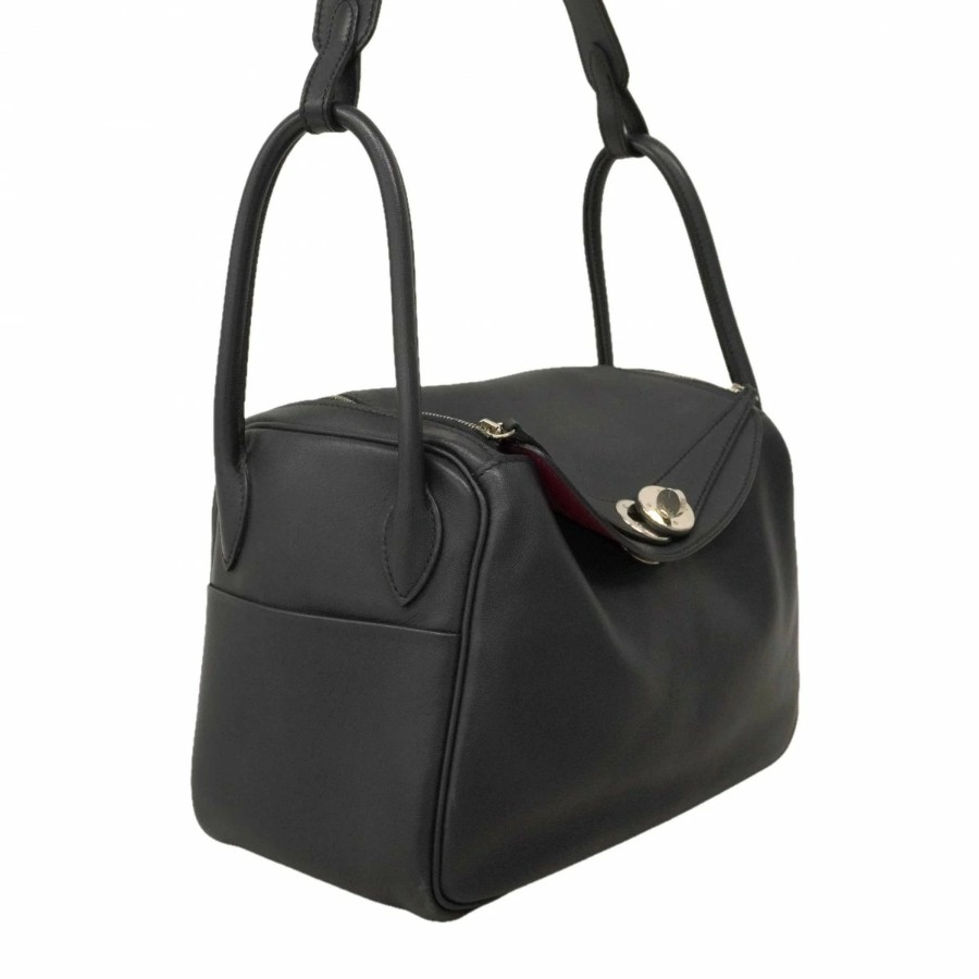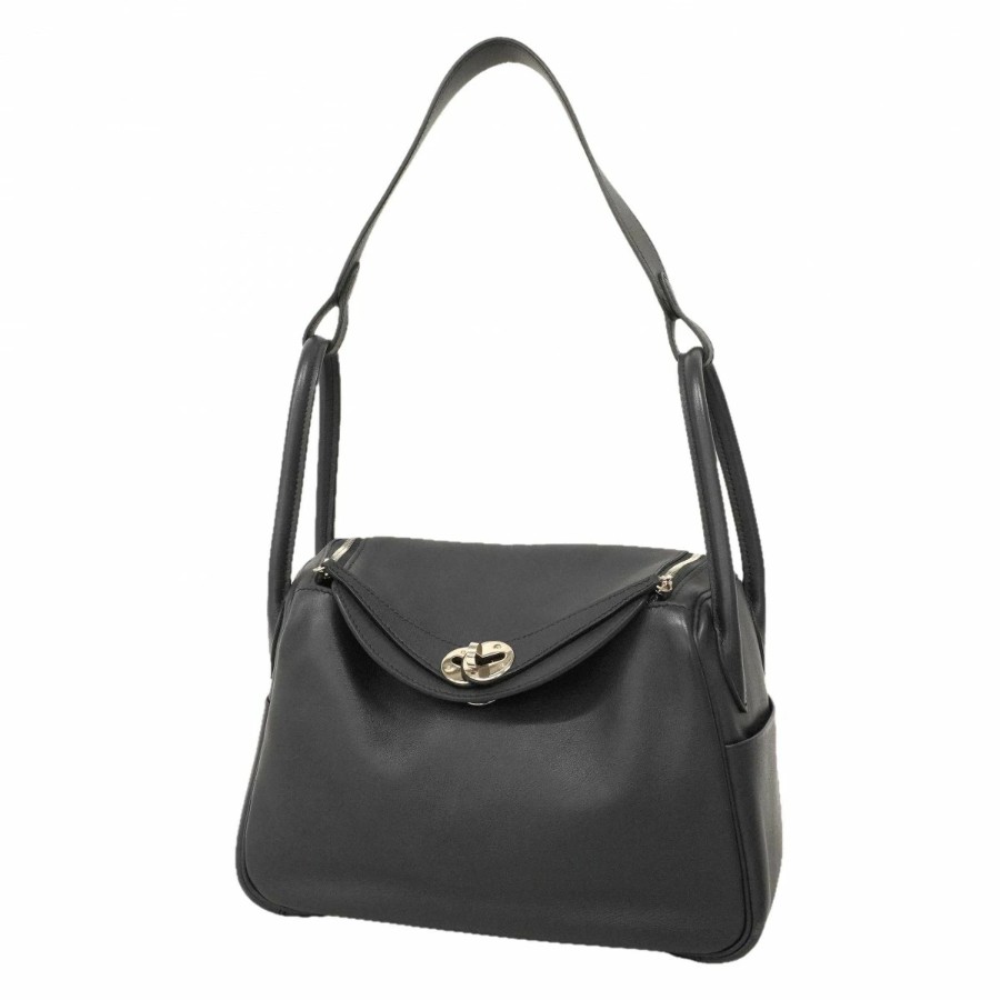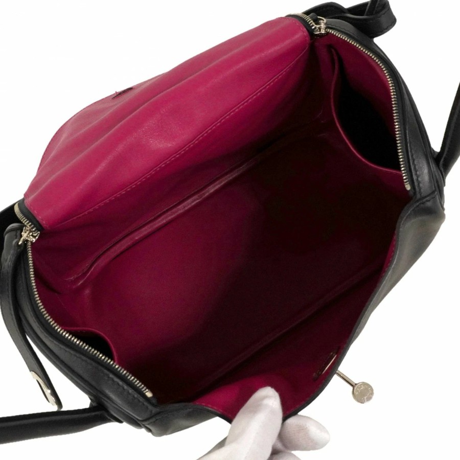 【6dc2307】エルメス ハンドバッグ リンディ26ヴェルソ スイフト ブルーインディゴ ローズパープル シルバー金具 C刻印 2wayバッグ【中古】レディース