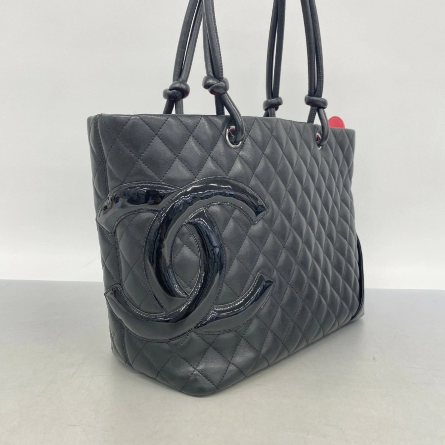 【6dc2340】シャネル トートバッグ カンボン ラムスキン ブラック シルバー金具【中古】レディース