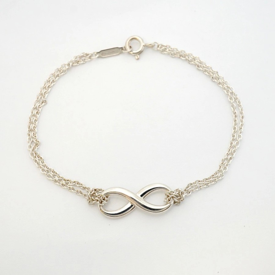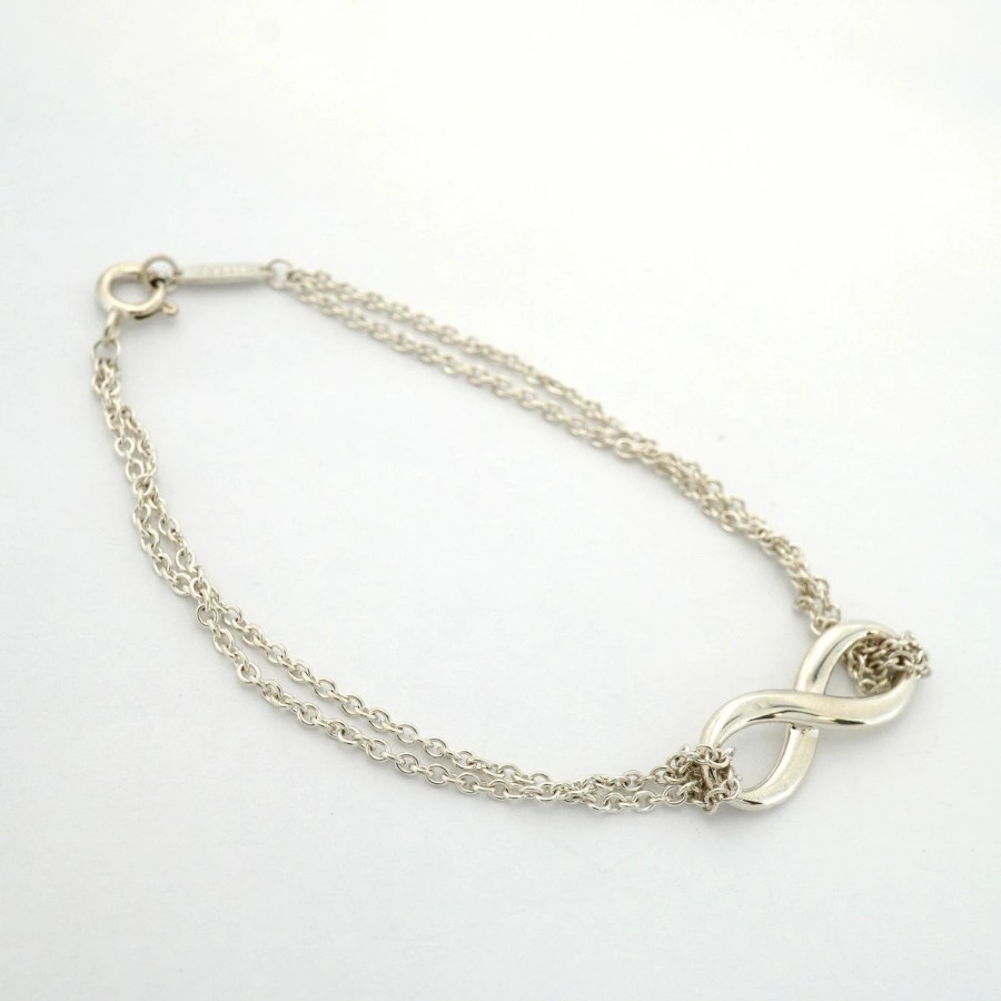 【6jdb0066-k】ティファニー ブレスレット インフィニティ ダブルチェーン シルバー925【中古】レディース