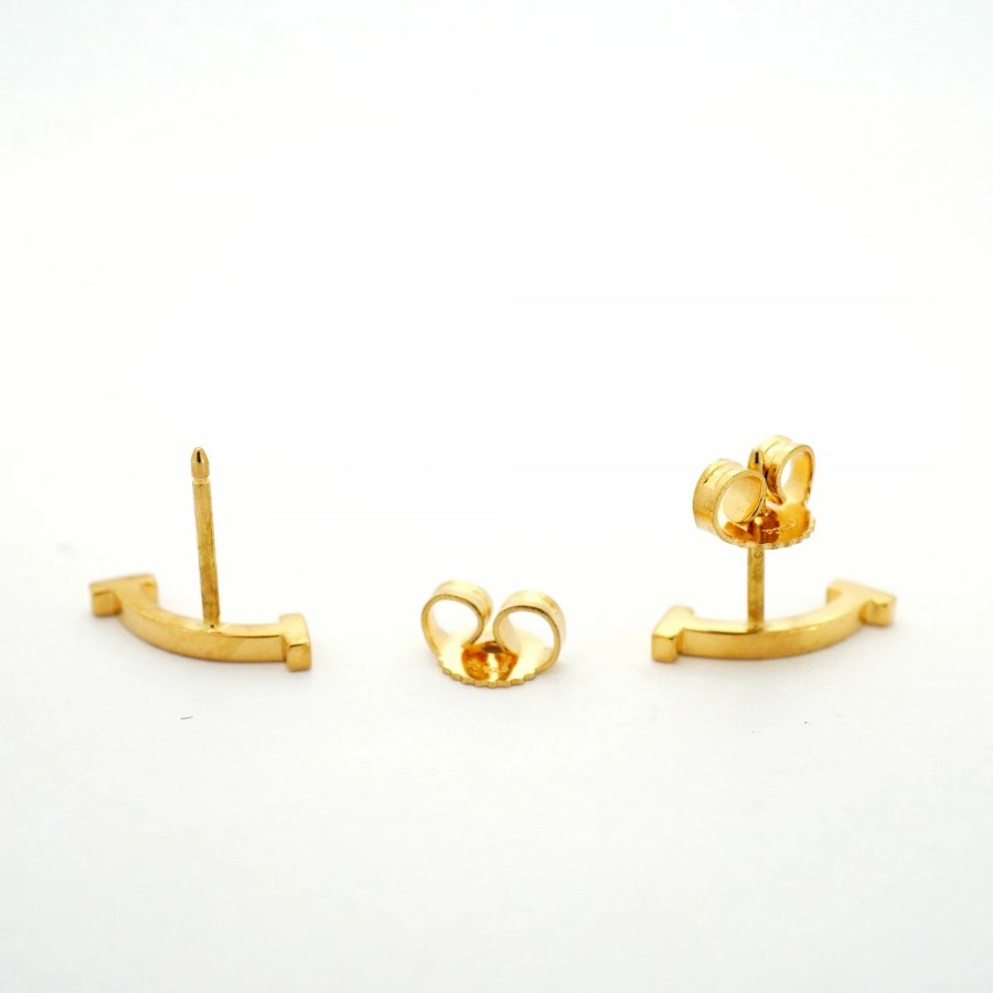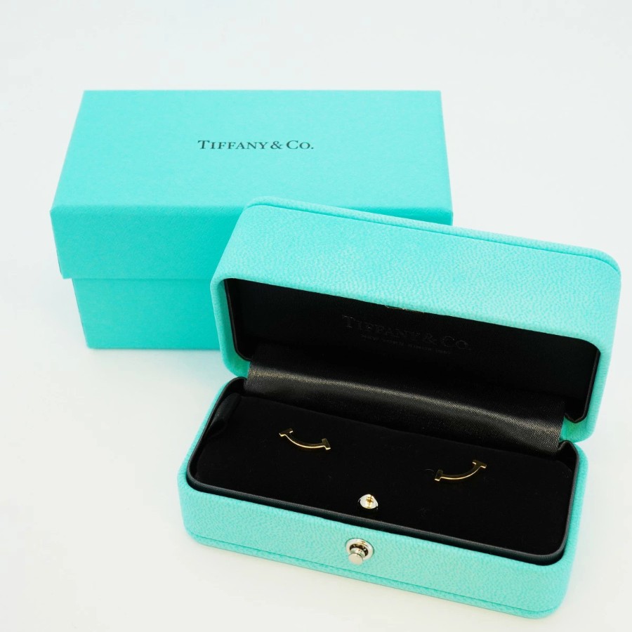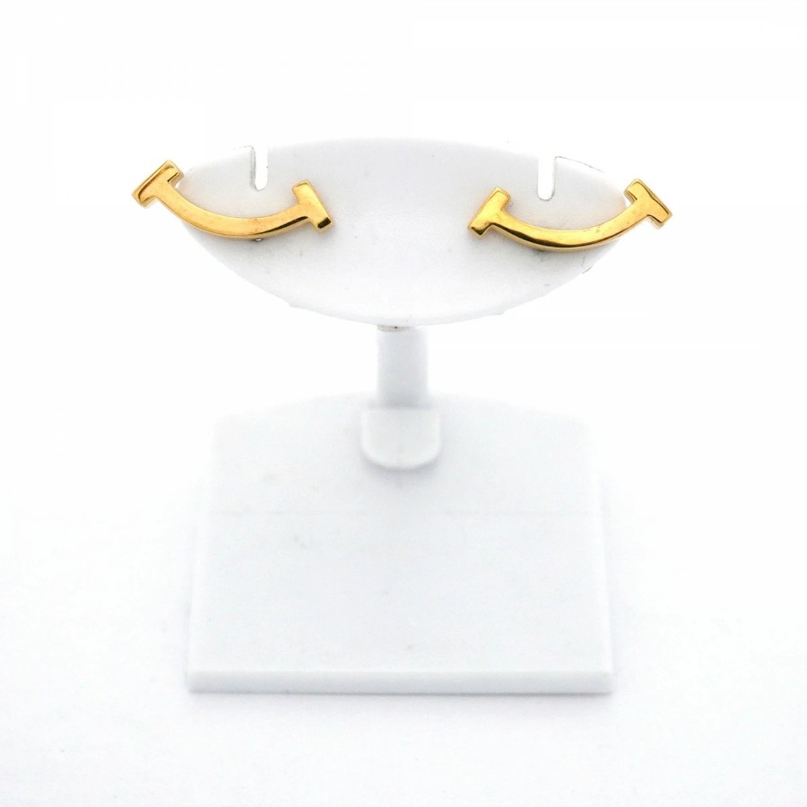 Earn 5x marathon points with your entry! / [6jdb0073] Tiffany & Co. T Smile Earrings K18YG Yellow Gold [Used] Women's