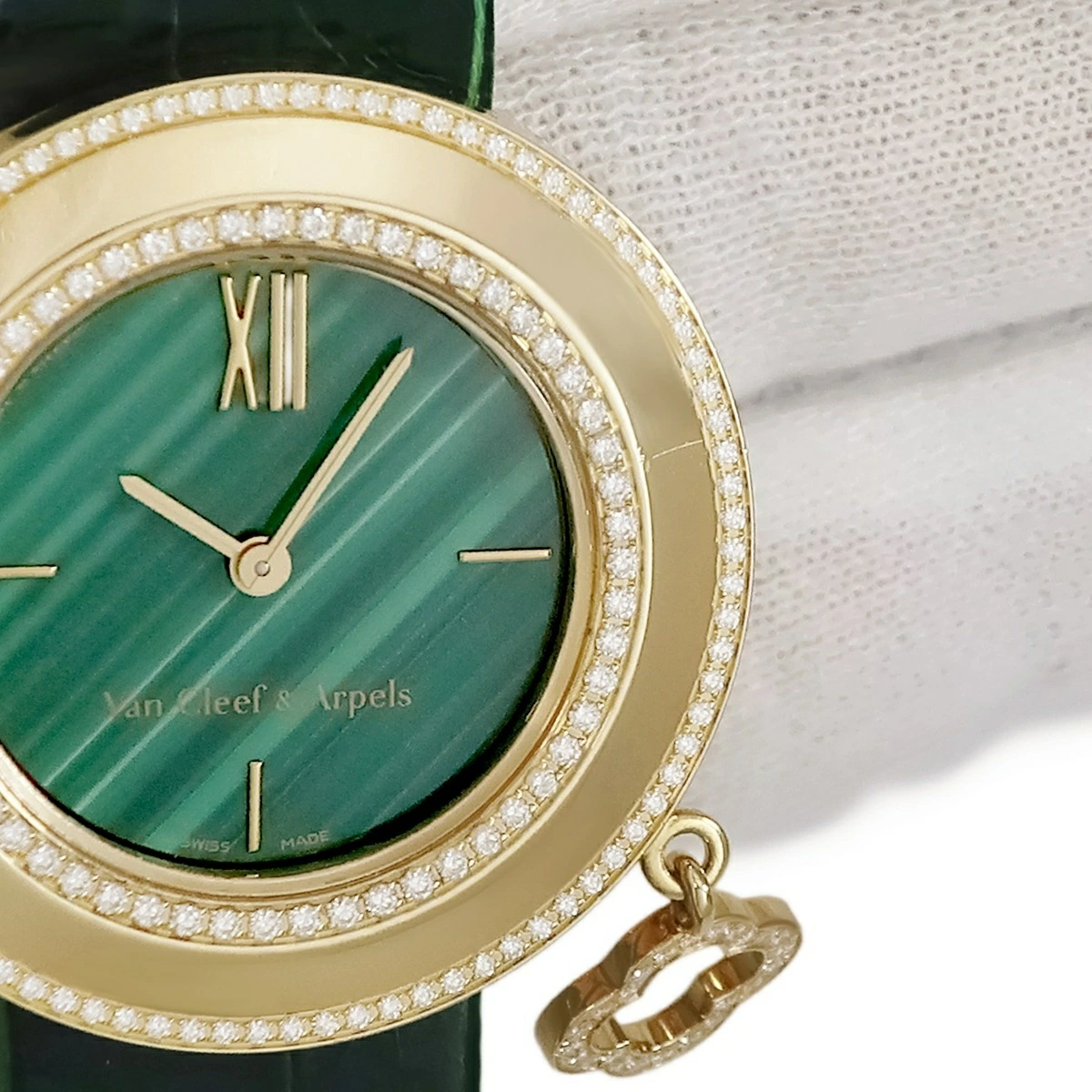 ヴァンクリーフアーペル Van Cleef & Arpels チャーム ゴールド マラカイト VCAR08NR00 K18YG無垢 純正ダイヤ レディース 腕時計クオーツ グリーン 【中古】【店頭受取不可】
