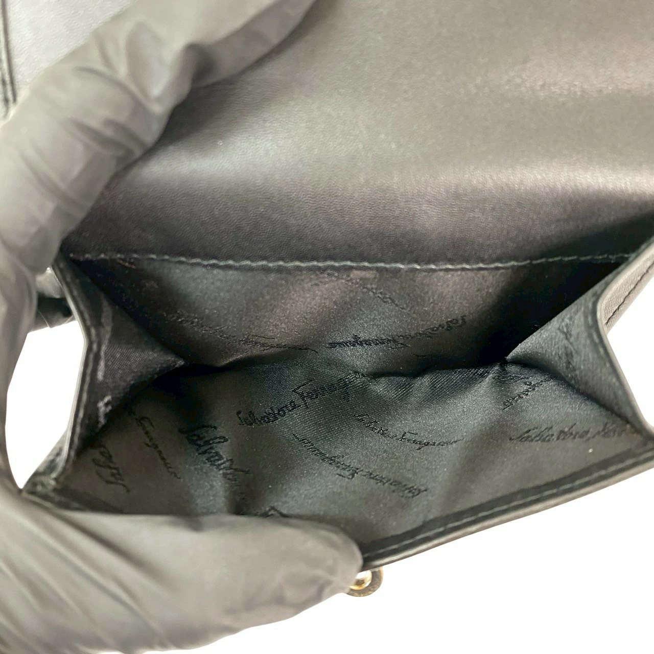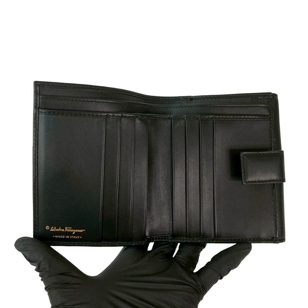 Earn double points! Excellent condition, box included. Salvatore Ferragamo Gancini logo hardware leather bi-fold mini wallet in black (28141). Pre-owned.