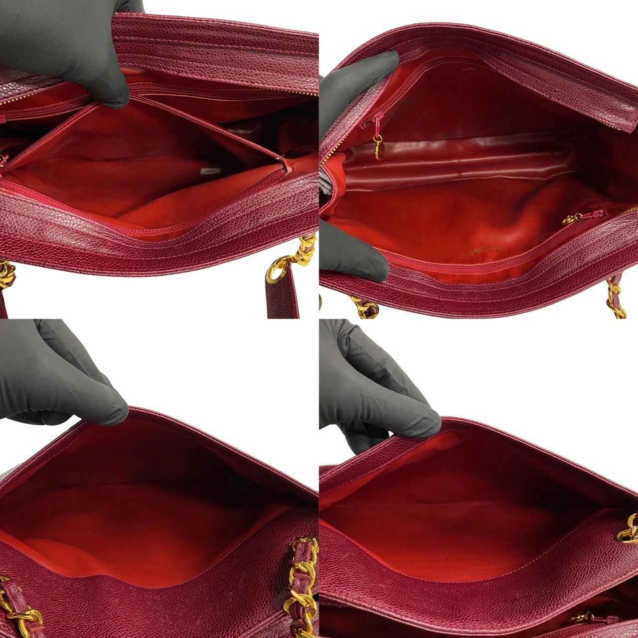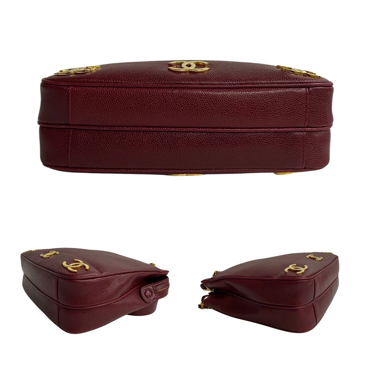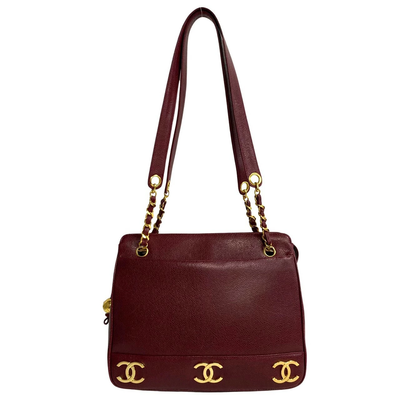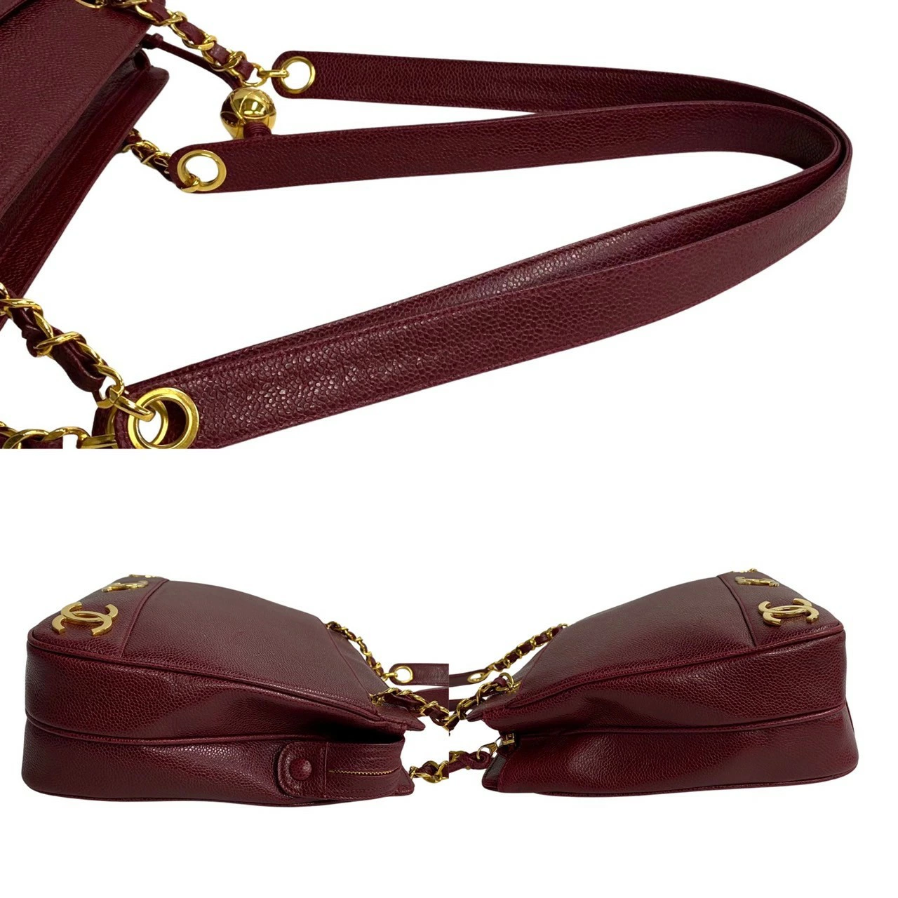 Earn double points! Excellent condition, boxed, with card and sticker. 3rd series CHANEL Triple Coco caviar skin, Coco mark, metal hardware, genuine leather, chain tote bag, Bordeaux, 16858. [Pre-owned]