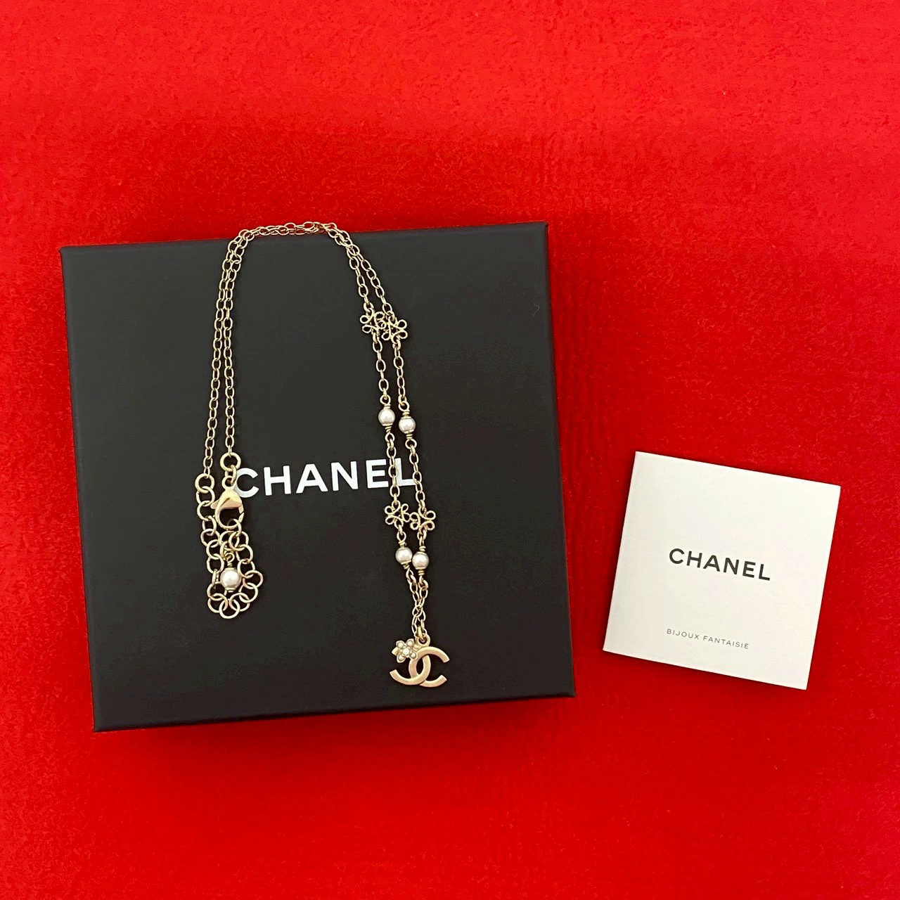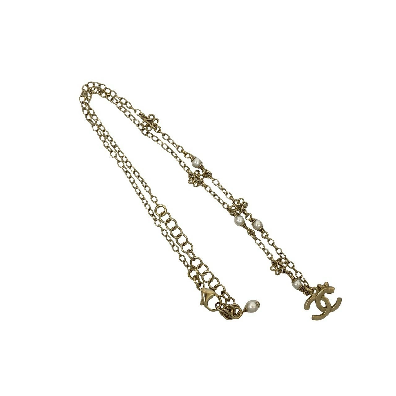 Earn double points! Excellent condition, boxed, with notes. C23K CHANEL Coco Mark faux pearl chain necklace pendant, gold, 62709. Pre-owned.