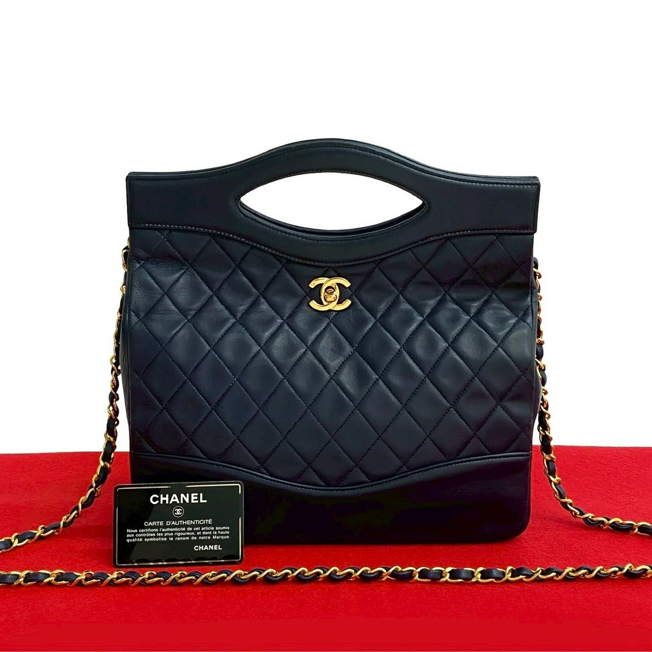 Earn double points! Excellent condition, card and sticker included. #1 Chanel Matelasse Coco Mark Lambskin 2-way Handbag/Shoulder Bag, Navy, 36702 (Pre-owned)