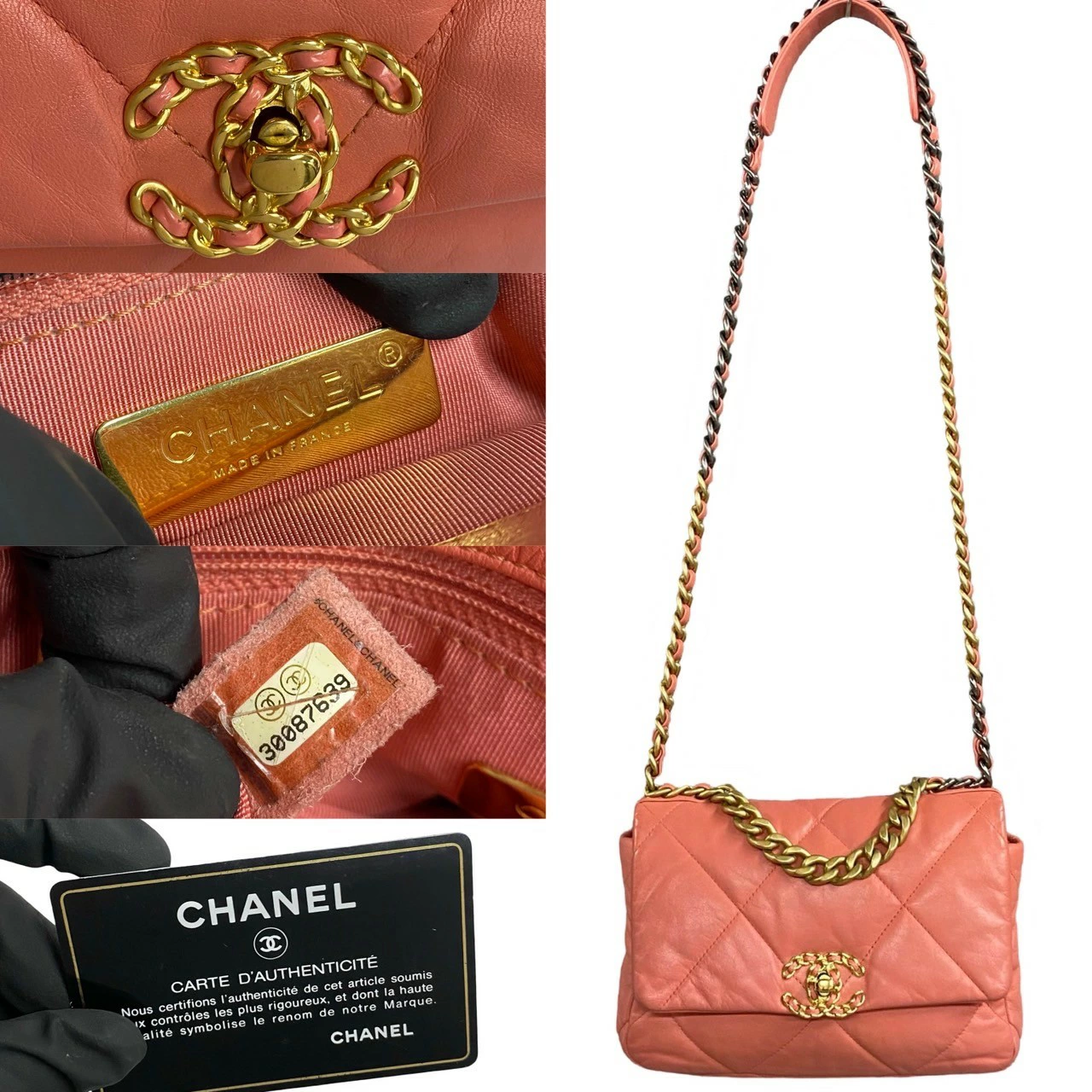 Earn double points! Excellent condition, card, sticker, and bag included. CHANEL Chanel 19 Matelassé Lambskin Chain Shoulder Bag, Pink, 11018 (Pre-owned).